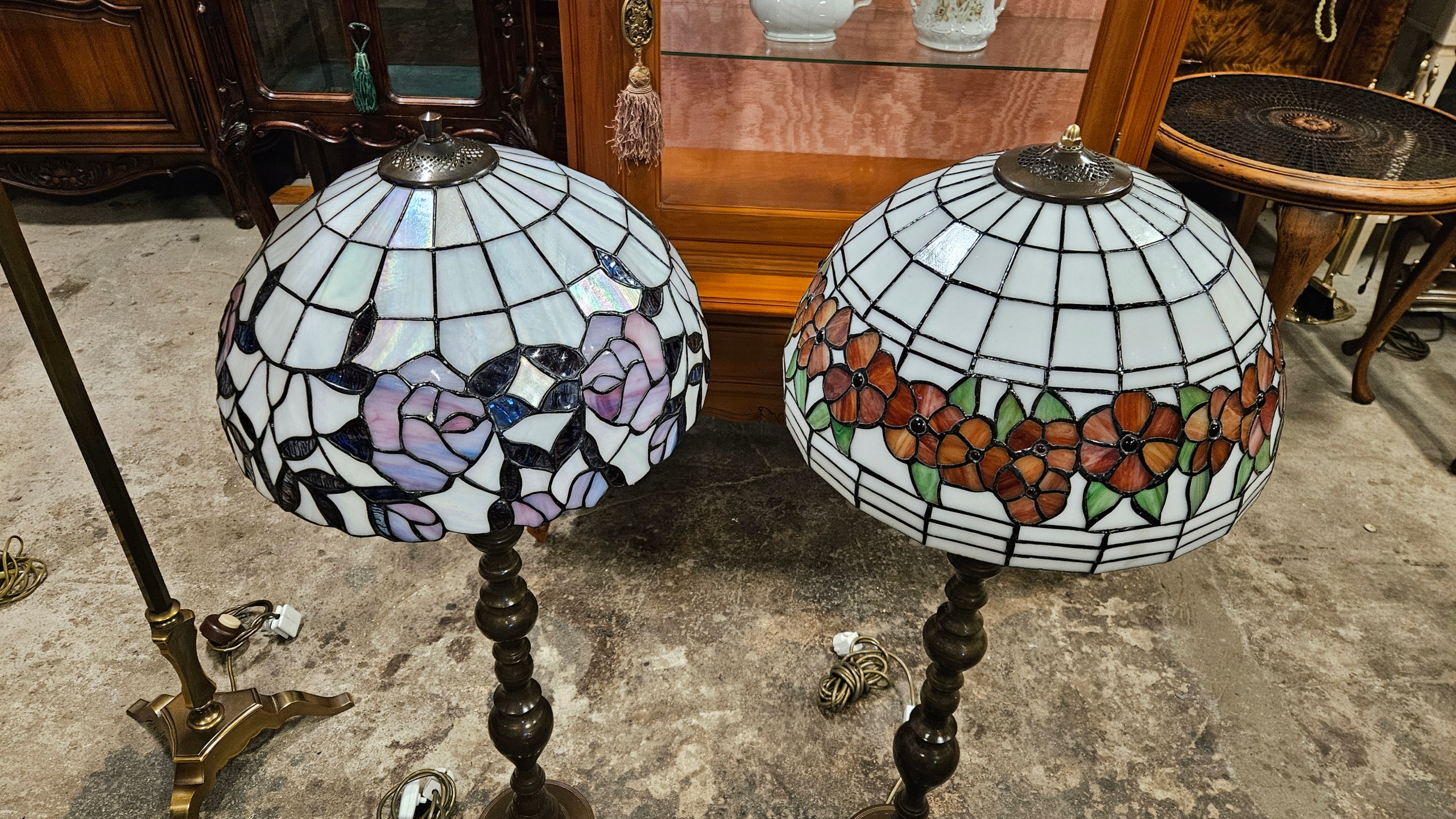 Stara Ładna Lampa Stojąca Mosiądz Abażur Tiffany