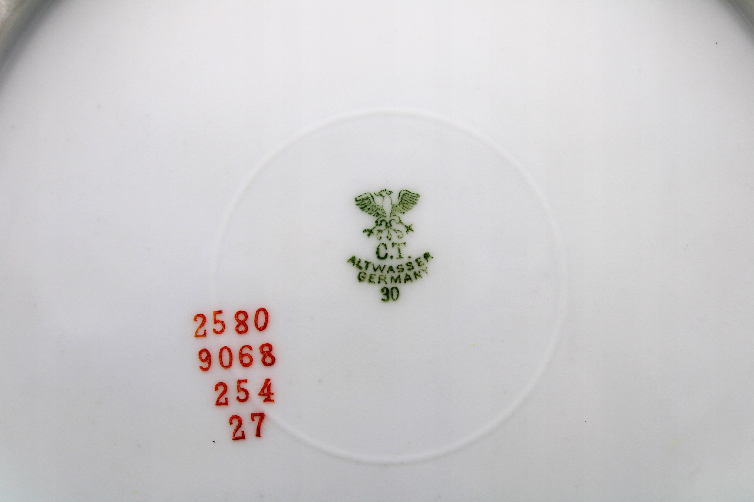 Я рекомендую старую древнюю тарелку, плодотворную фарфоровую фабрику Карла Тильша в Алтвейсере - Стари -Здр Стэри Силезии, сделанная в 1930 году, разделенное в руках, например, на сканировании в течение 95 лет, очень хорошая позолота и 100 % оригинал. Декор