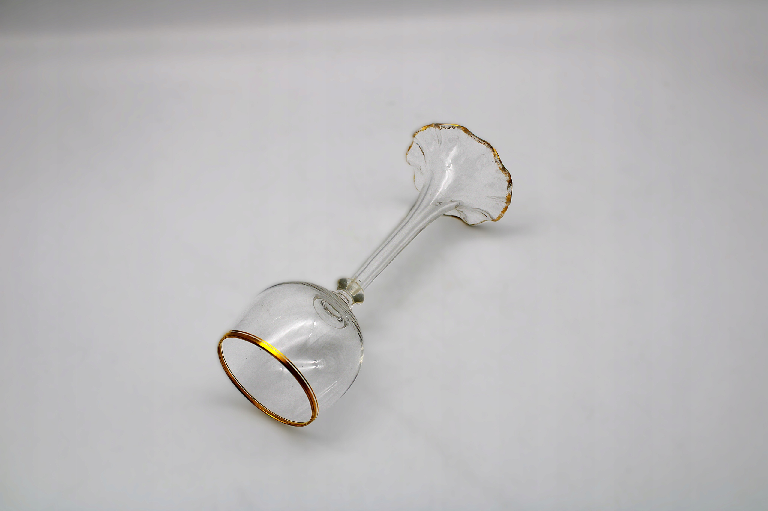 Я рекомендую старую антикварную большую винную чашку, изготовленную в стеклянном заводе Józefina около 1900 года. Все условия ручной работы, такие как на очень хорошем сканировании, имеют естественные временные абраоны на позолочке