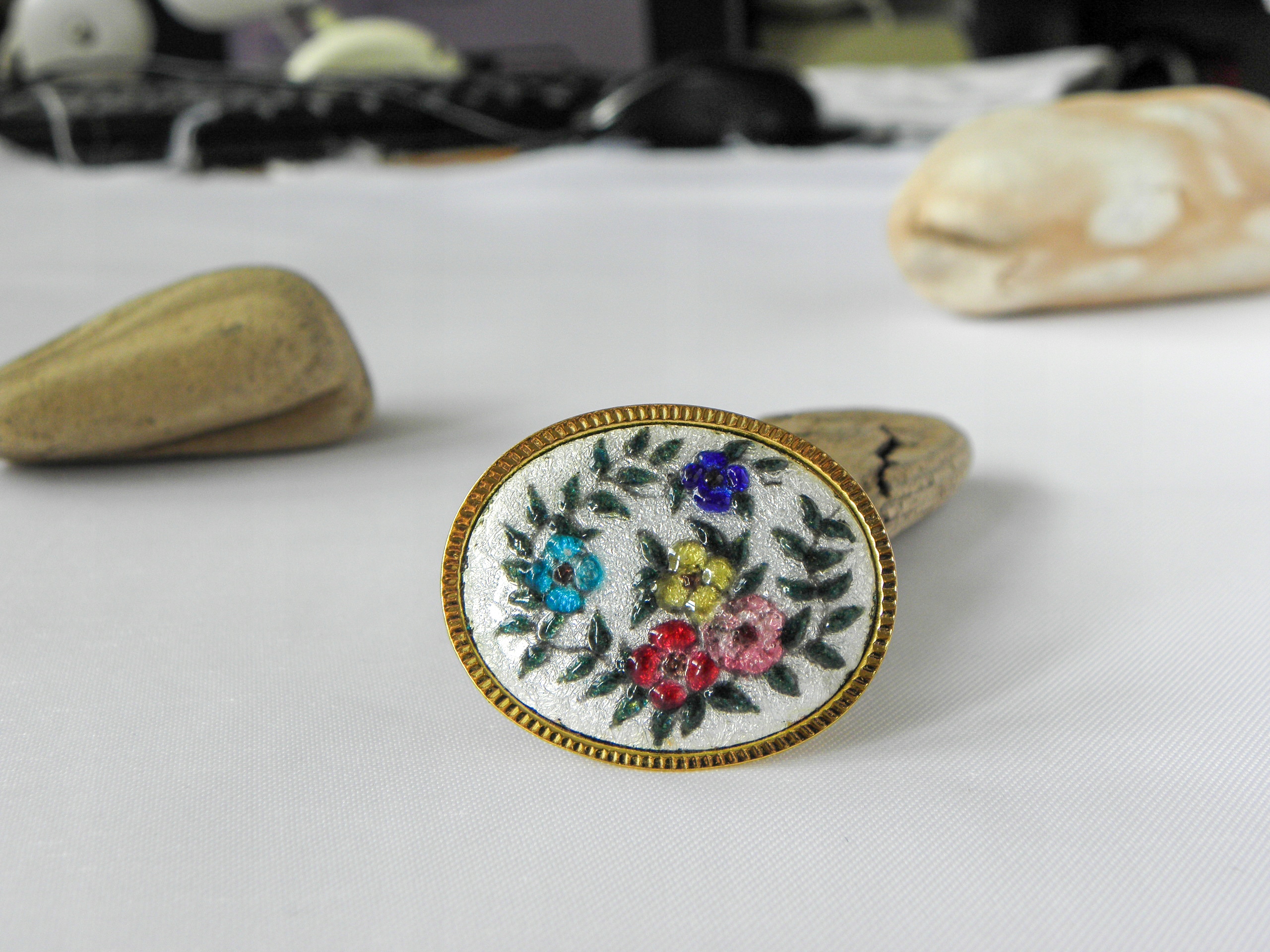 STARA BIŻUTERIA BROSZKA CERAMIKA EMALIA