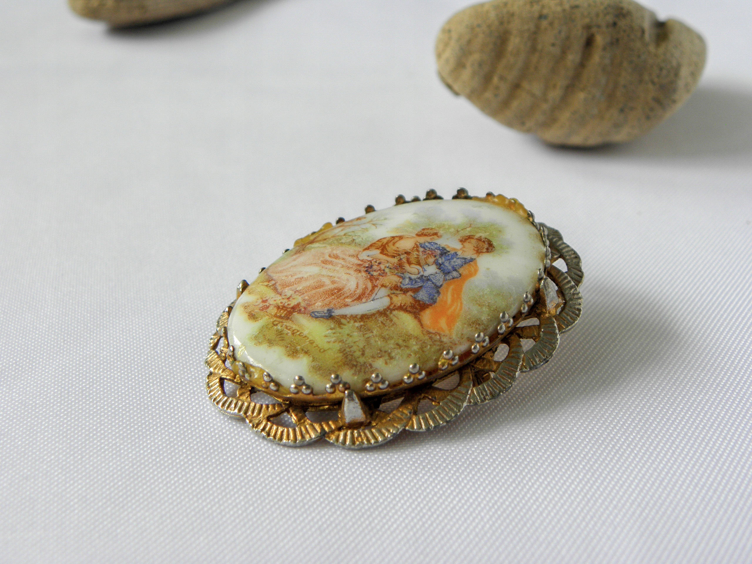 STARA BIŻUTERIA BROSZKA CERAMIKA FRANCJA FRAGONARD