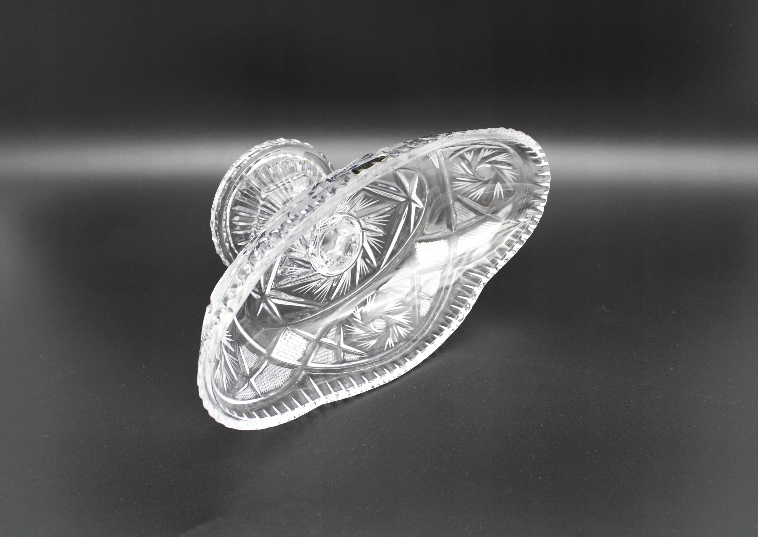 РЕКОМЕНДУЮ СТАРЫЙ ТЯЖЕЛЫЙ ХРУСТАЛЬНЫЙ ЖАРДИНЬЕ, ИЗГОТОВЛЕННЫЙ НА ХРУСТАЛЬНОМ СТЕКЛЯННОМ ЗАВОДЕ ВИОЛЕТТА - СТРОНЕ СЛЕНСКИЕ, СОСТОЯНИЕ ТАКОЕ КАК НА СКАНИРОВАНИИ, ОЧЕНЬ ХОРОШЕЕ