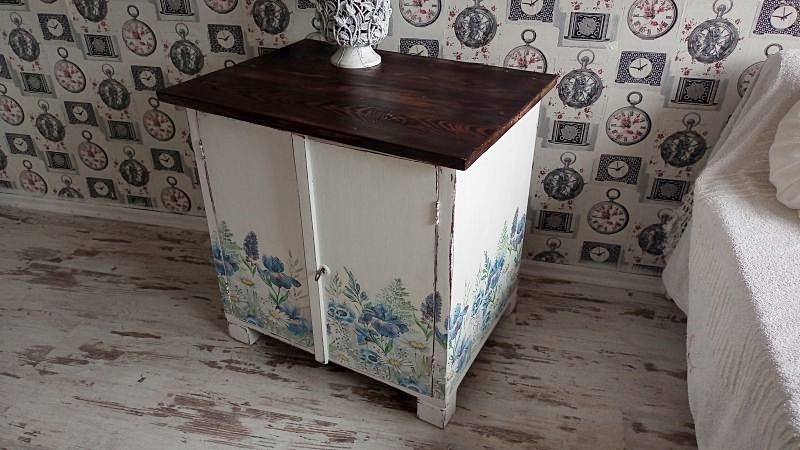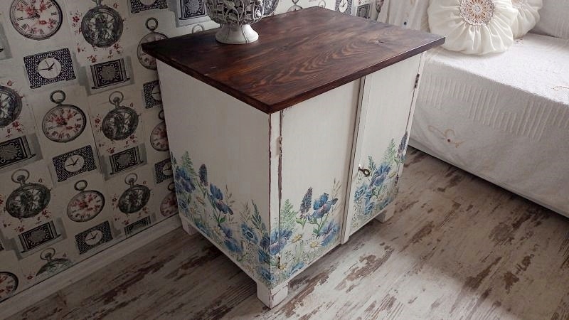 STARA DREWNIANA MALOWANA SZAFKA ŁĄKA SHABBY CHIC