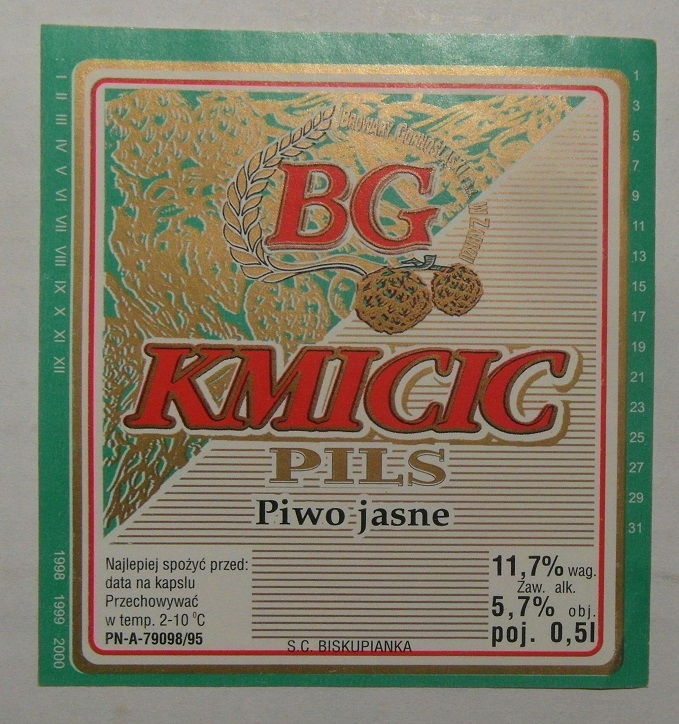 STARA ETYKIETA PIWO KMICIC BROWAR CZĘSTOCHOWA ROZLEWNIA S.C. BISKUPIANKA