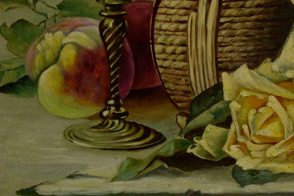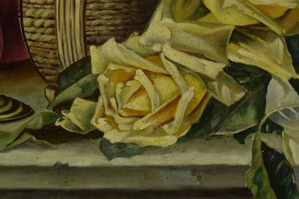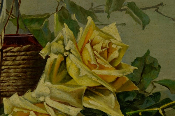 Старая картина, натюрморта с розами, масло, подписано 57x48 см.