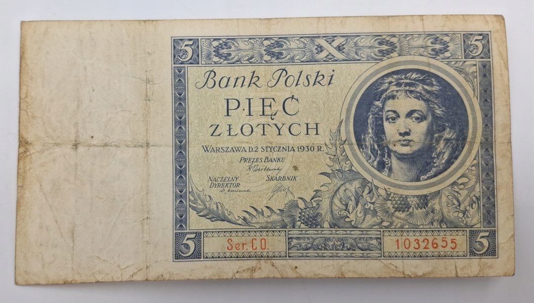 Старая коллекционная банкнота Польша 5 злотых 1930 года.