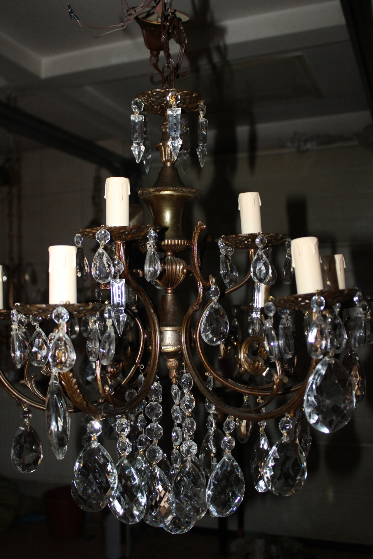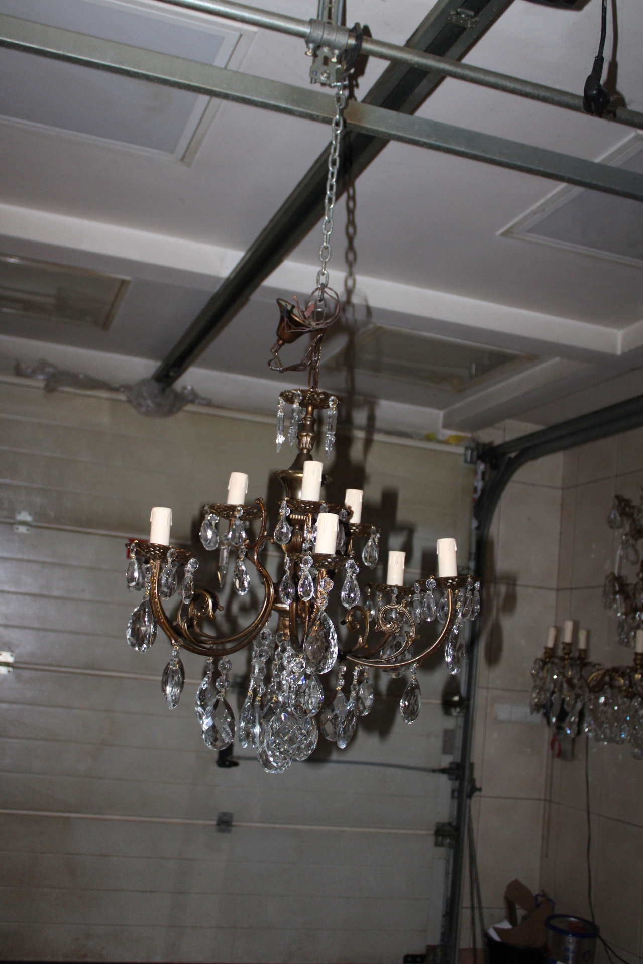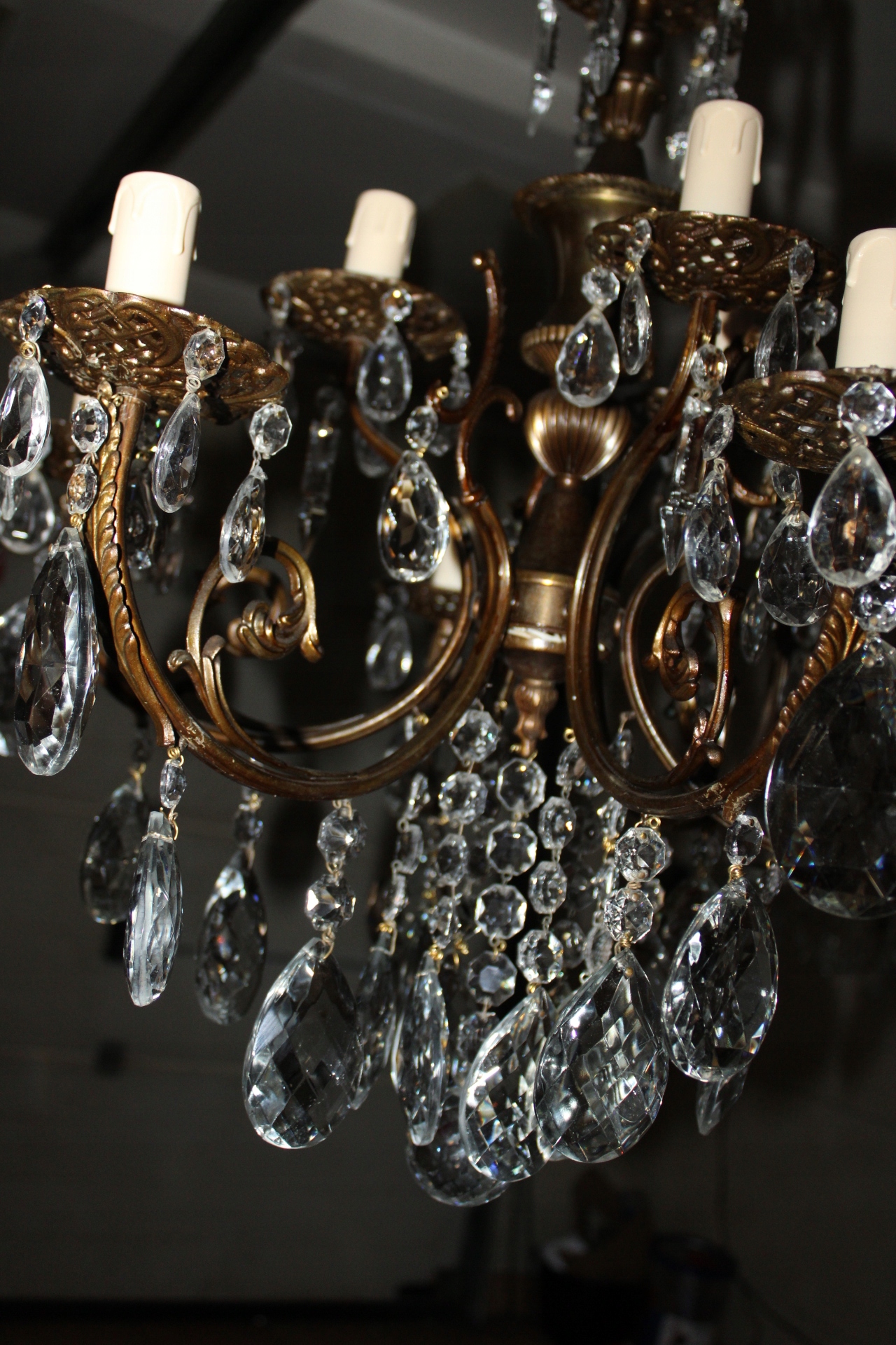 Старая итальянская люстра с оригинальными кристаллами и латунной структурой, новые рамы, рабочая электрика