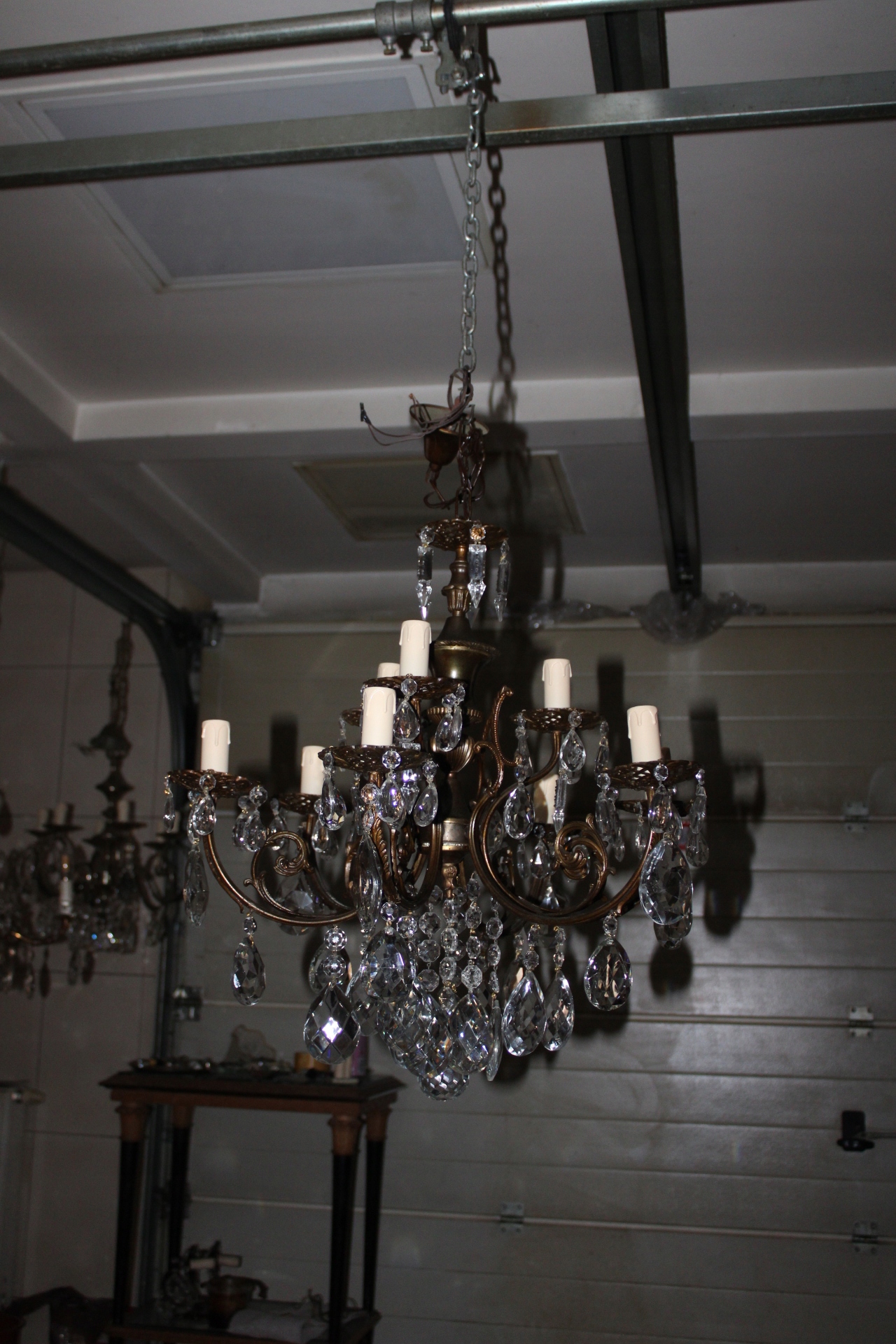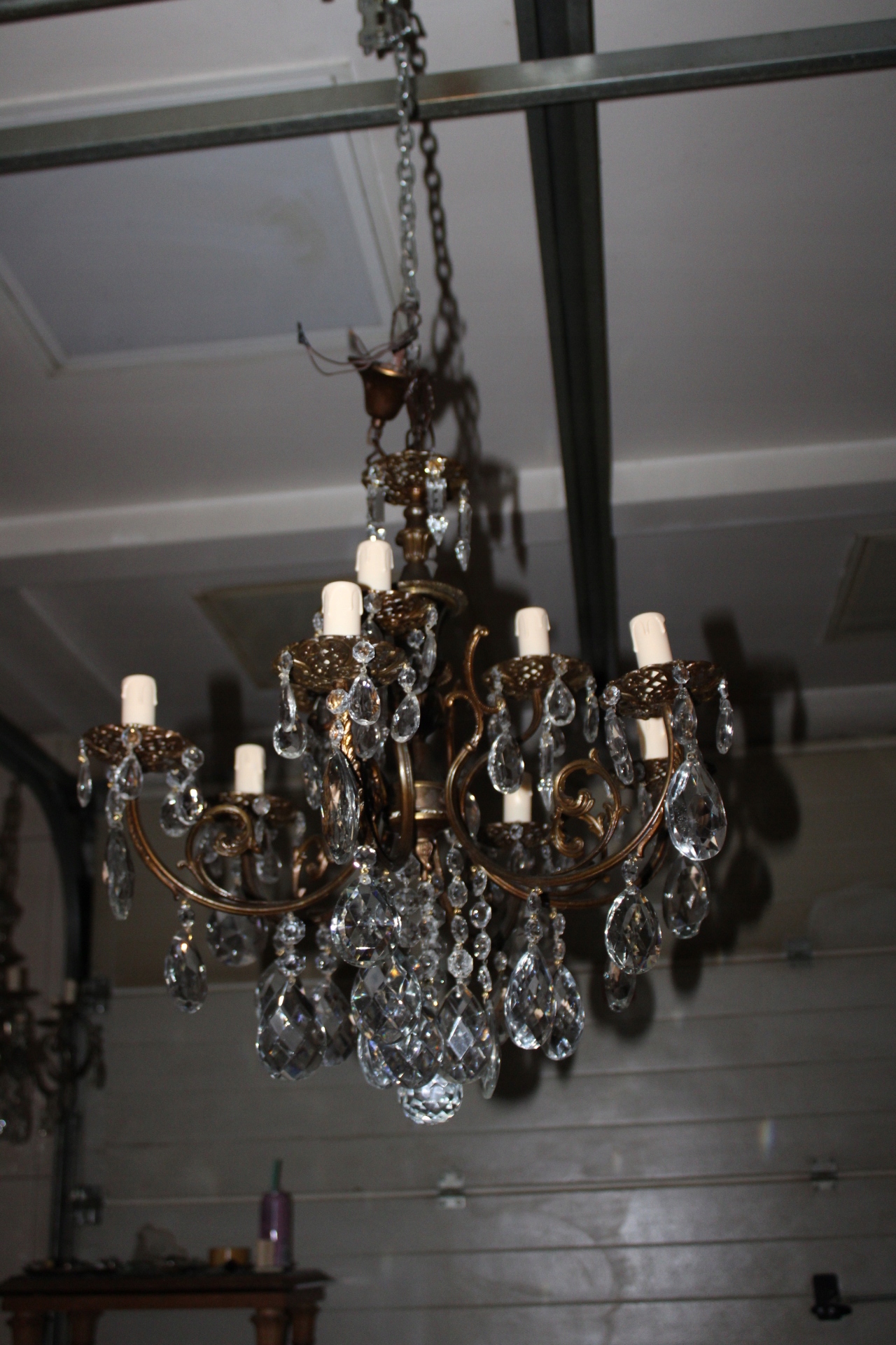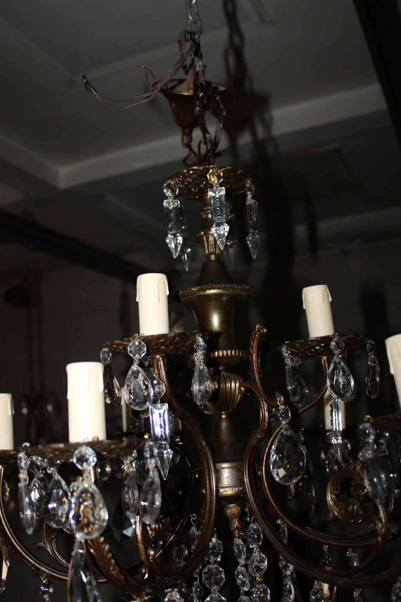Старая итальянская люстра с оригинальными кристаллами и латунной структурой, новые рамы, рабочая электрика