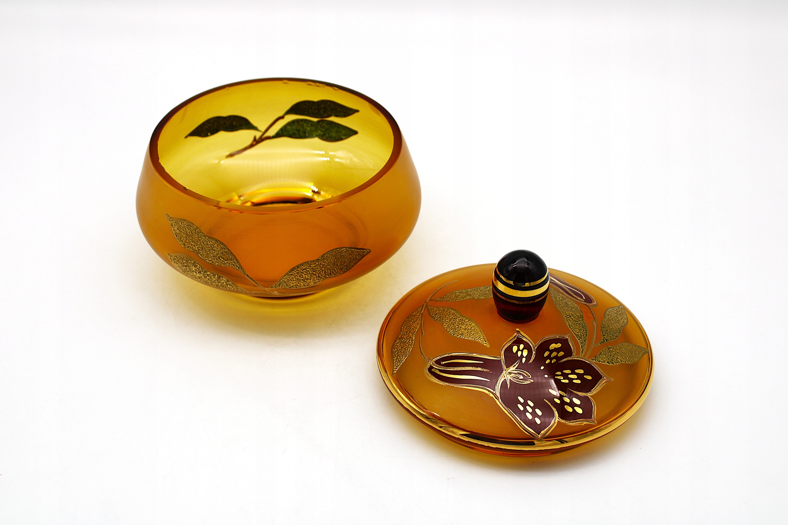 Я рекомендую старую шоколадную коробку для деликатесов Стекло богемии - условия Чехословакии, например, на сканировании изнутри на Раноме. Следы использования из крышки, показанной на фотографии