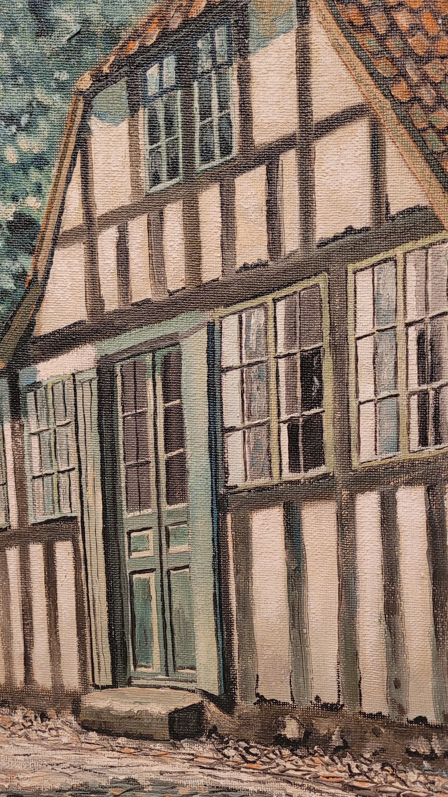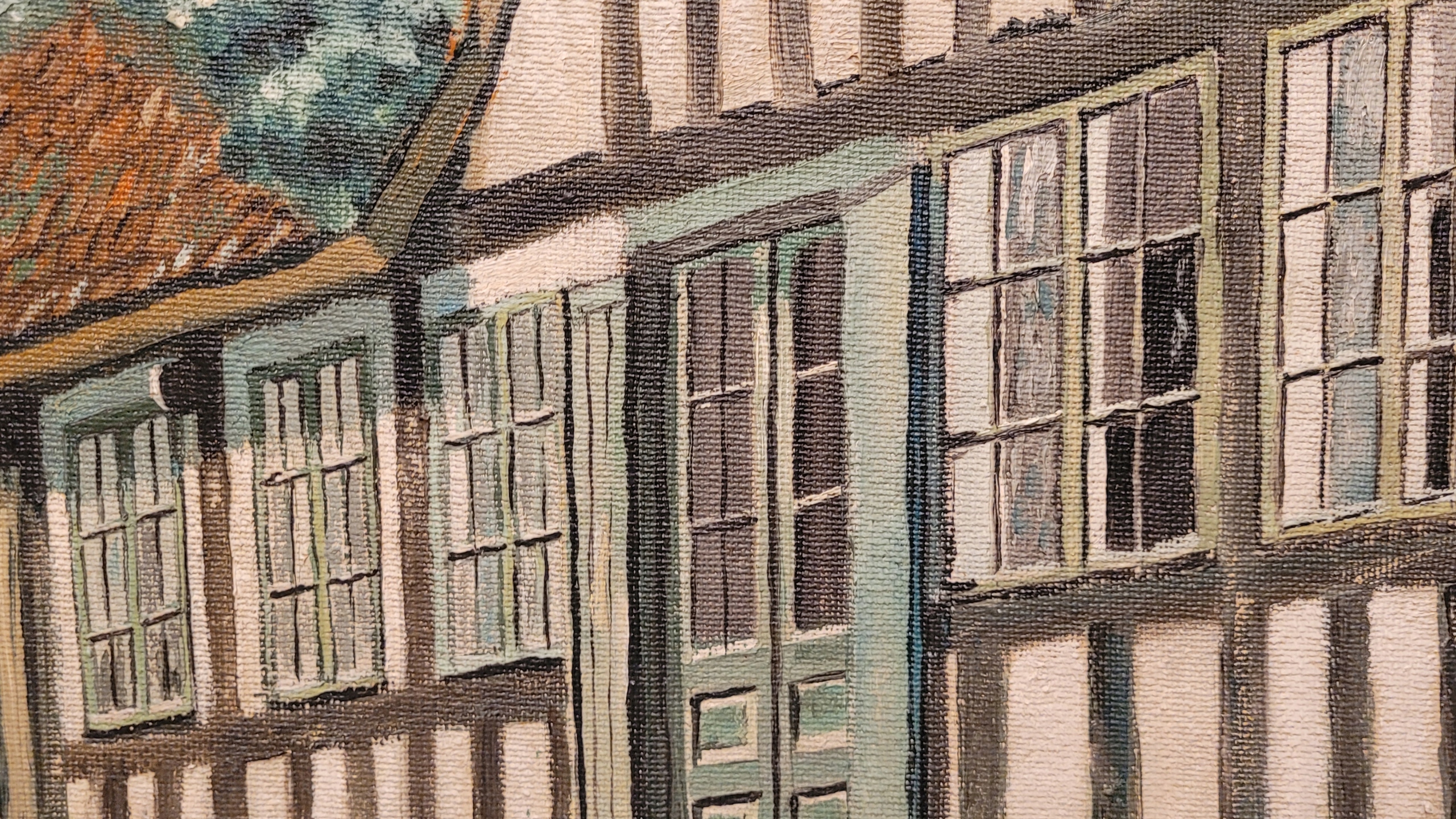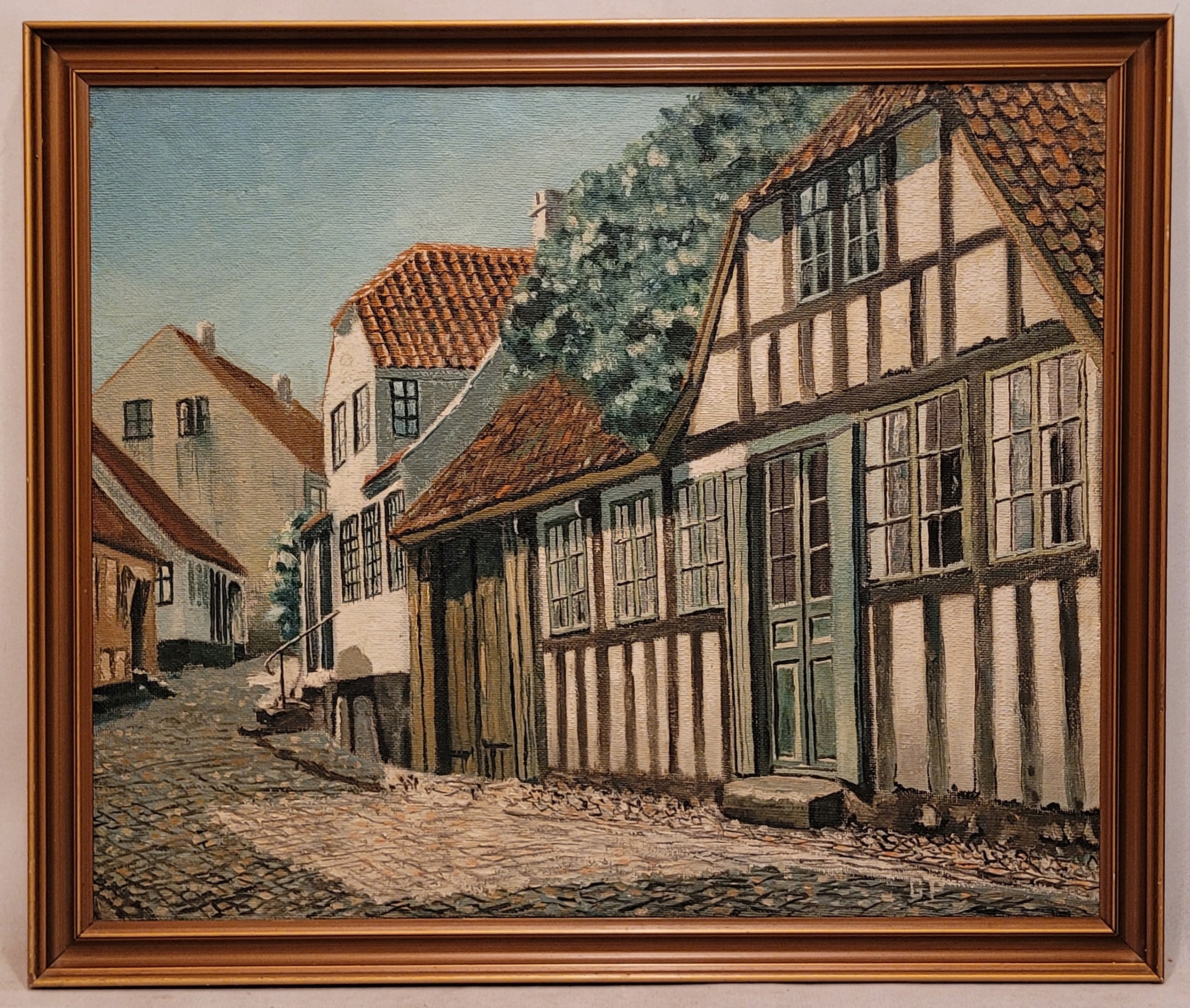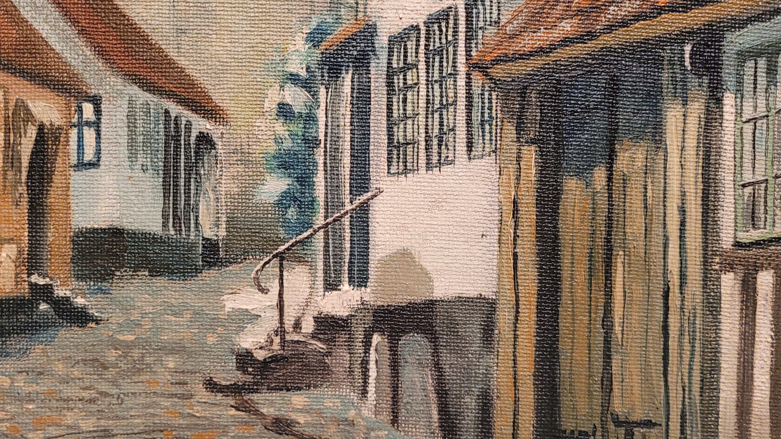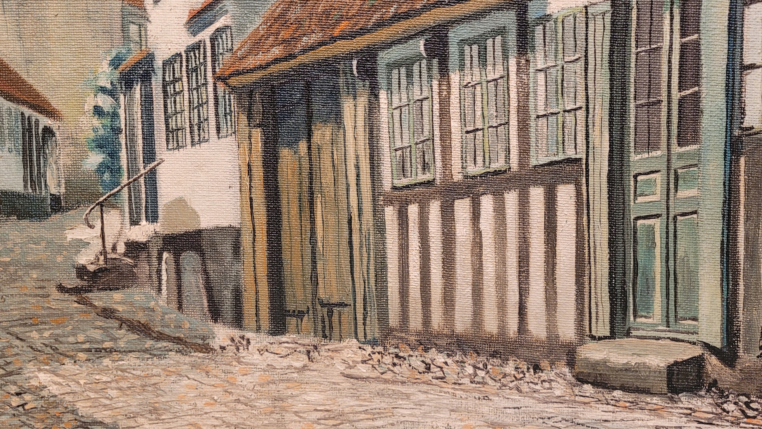 Тема продажи - красивая старая нефтяная картина "Старый город".