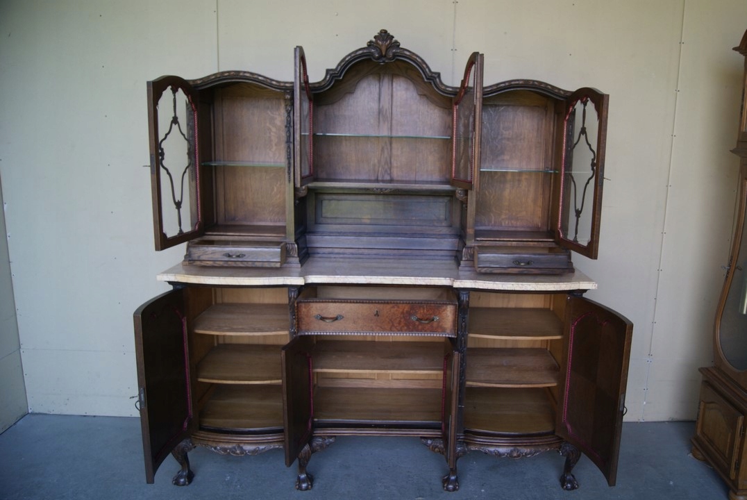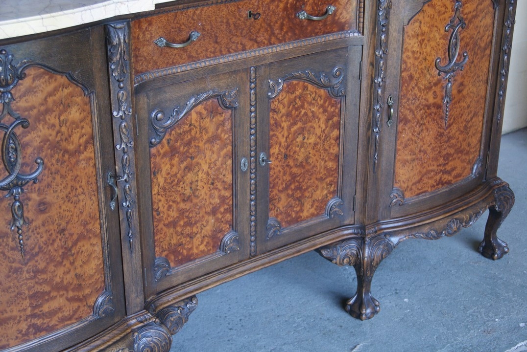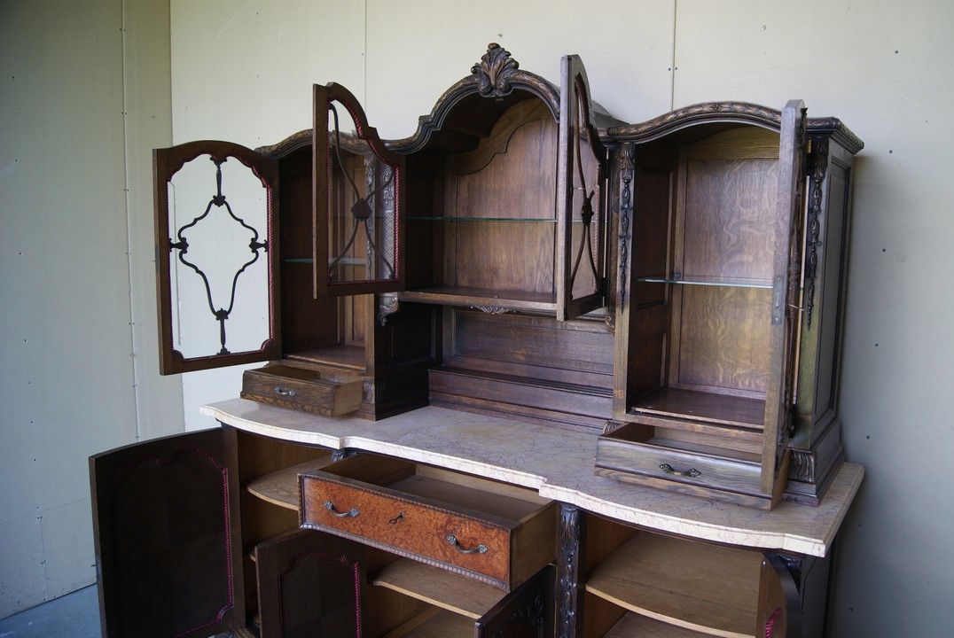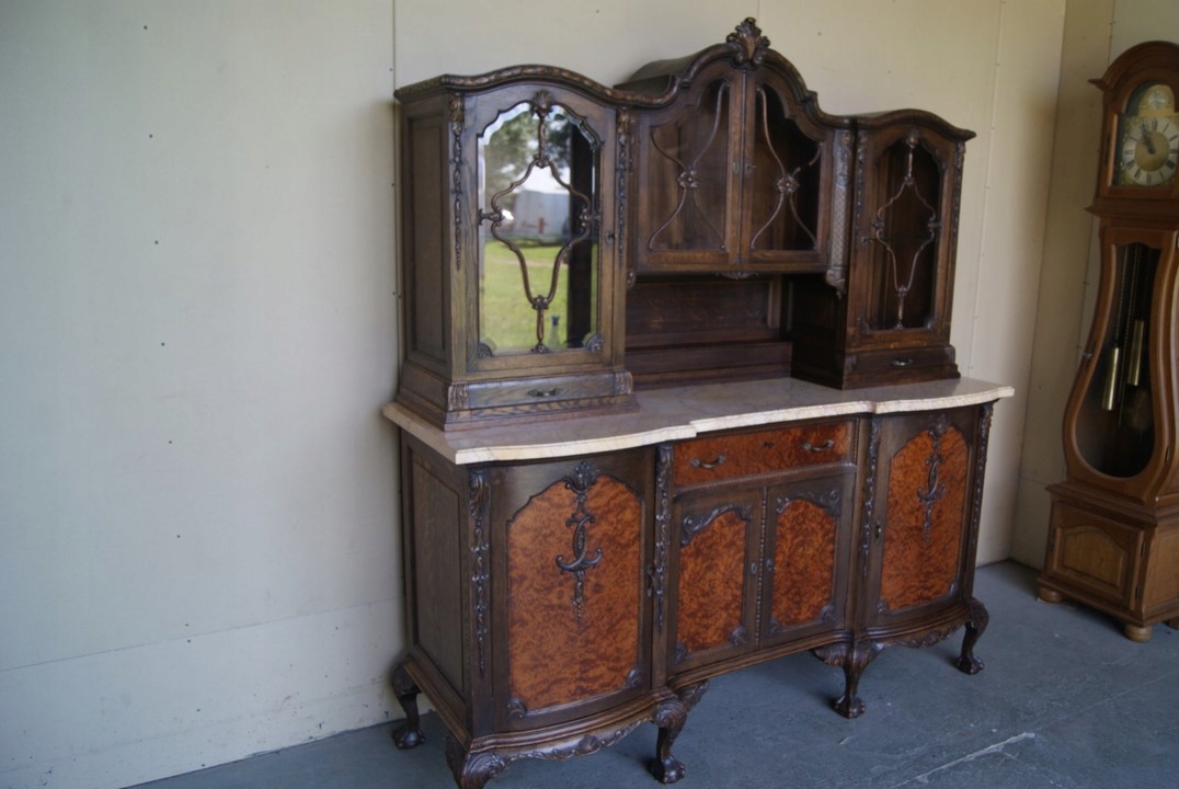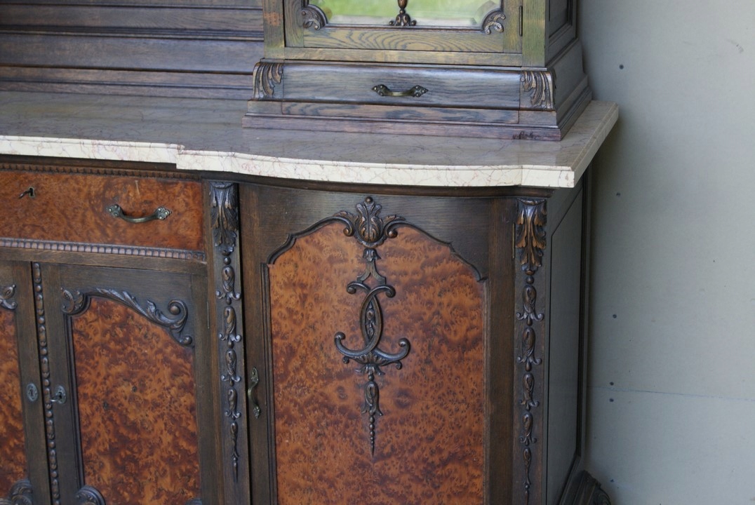 Сегодня я хочу предложить вам красивый старинный сервант с множеством украшений и каменной столешницей, который непременно украсит любой интерьер, придав ему неповторимый стиль, будучи и очень удобен в использовании.