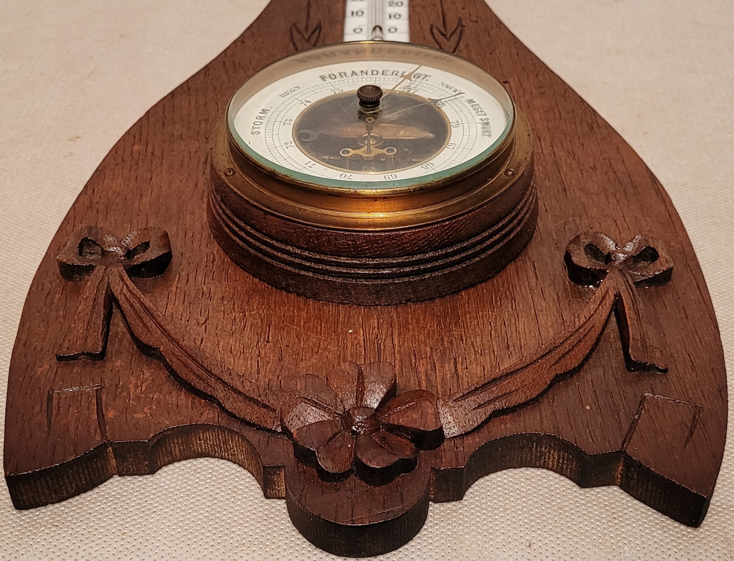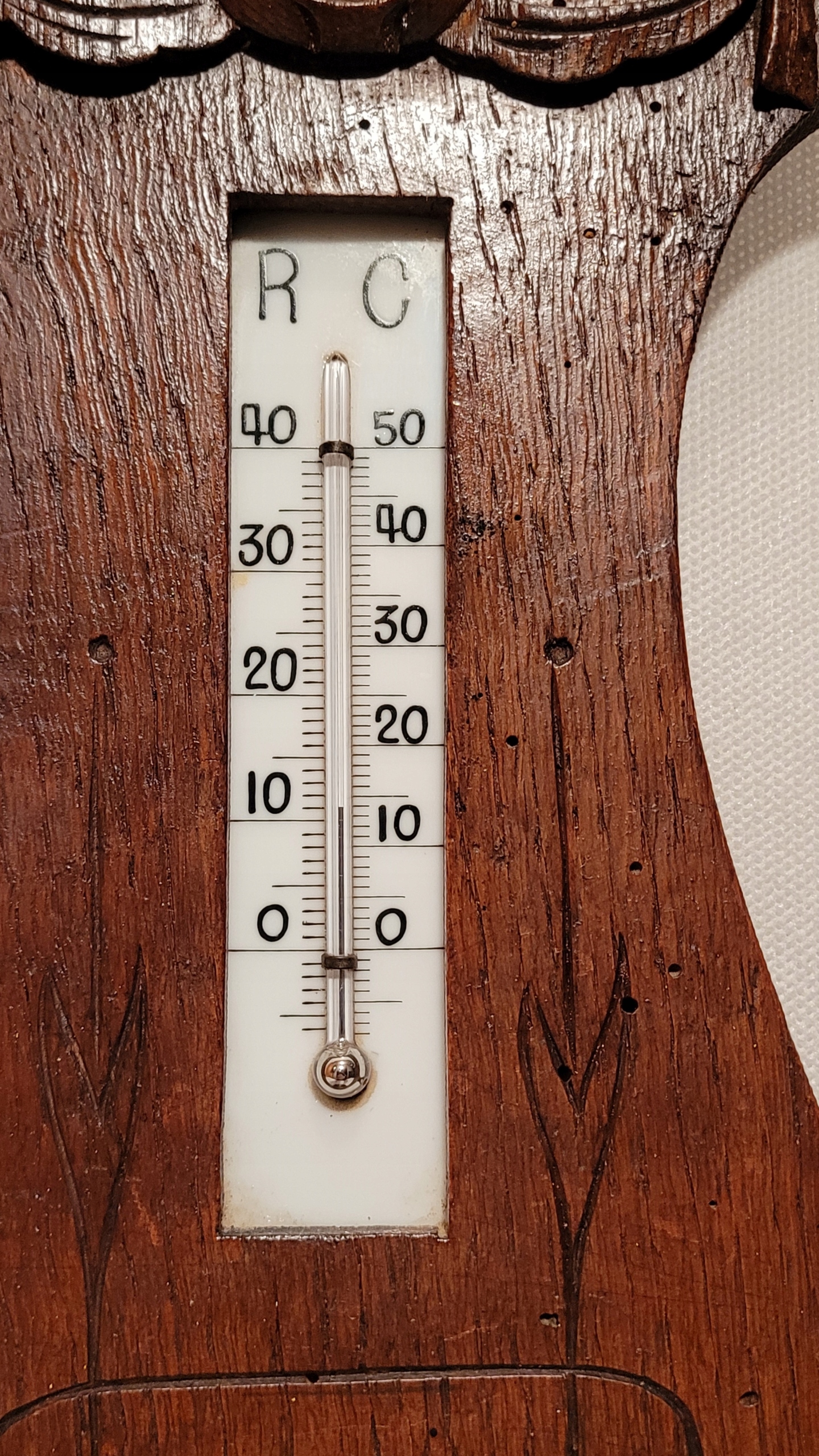Предмет продажи - старинный барометр с термометром в деревянной рамке.