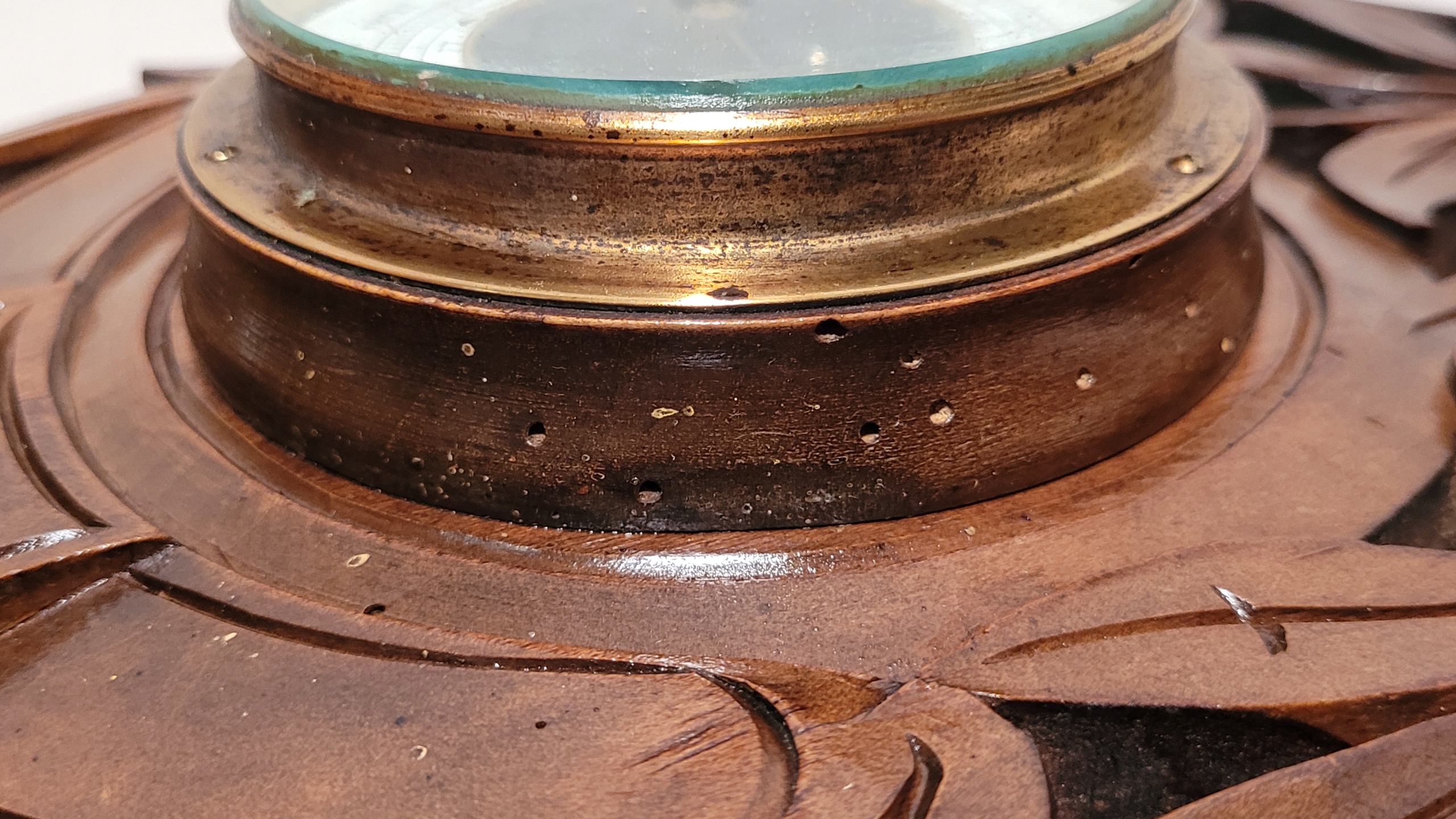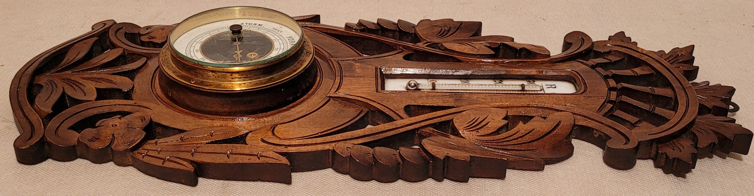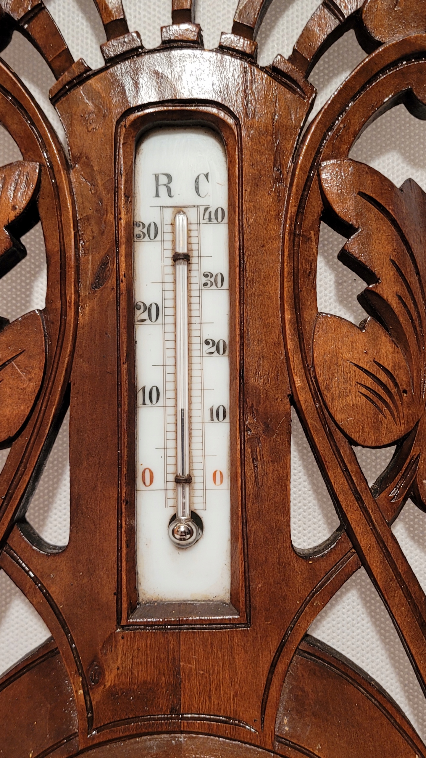 Предмет продажи - старинный барометр с термометром в деревянной рамке.