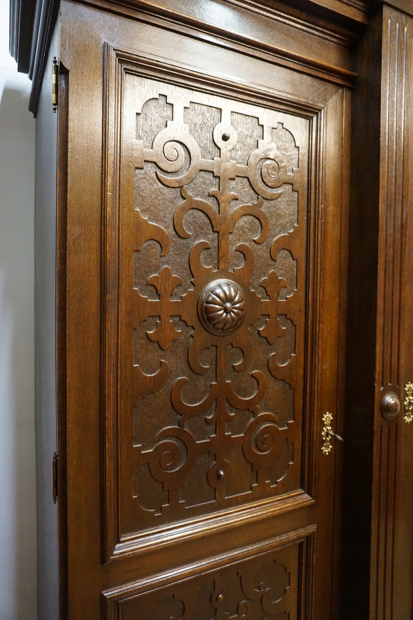 Мы рады представить вам замечательный резные трехдородный эклектичный гардероб с зеркалом. Все, что сделано с вниманием к наименьшим деталям, эффективный ключ замков в наборе, дополнительное очарование добавляется красивыми и тонкими резьбами на двери