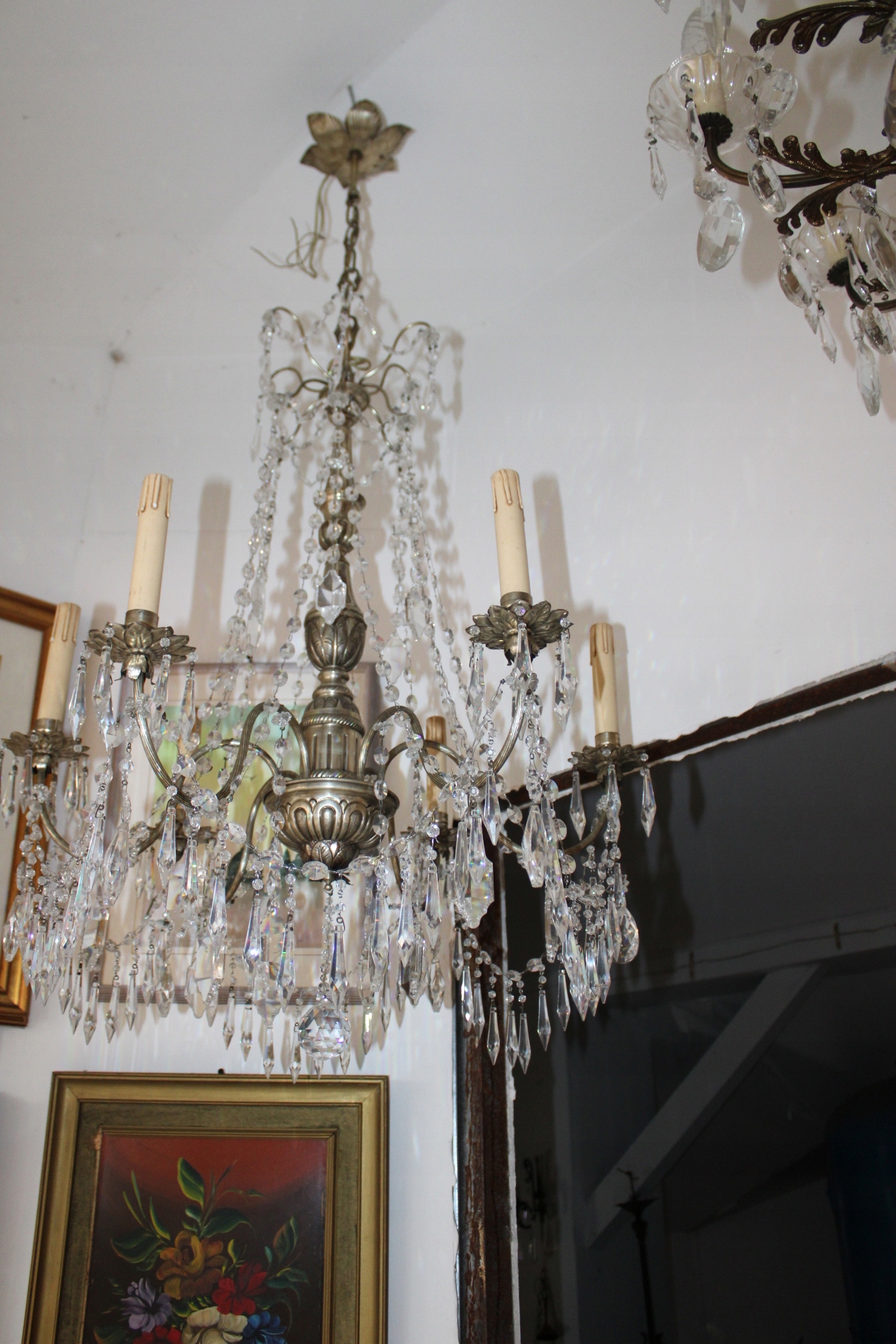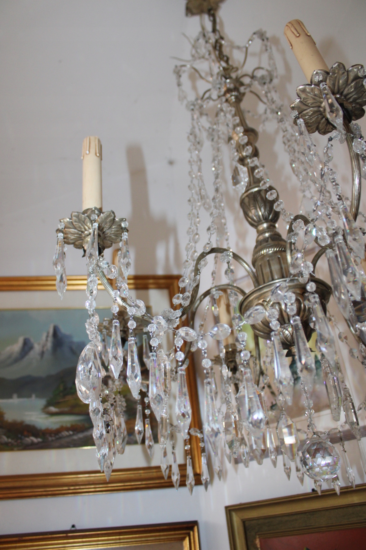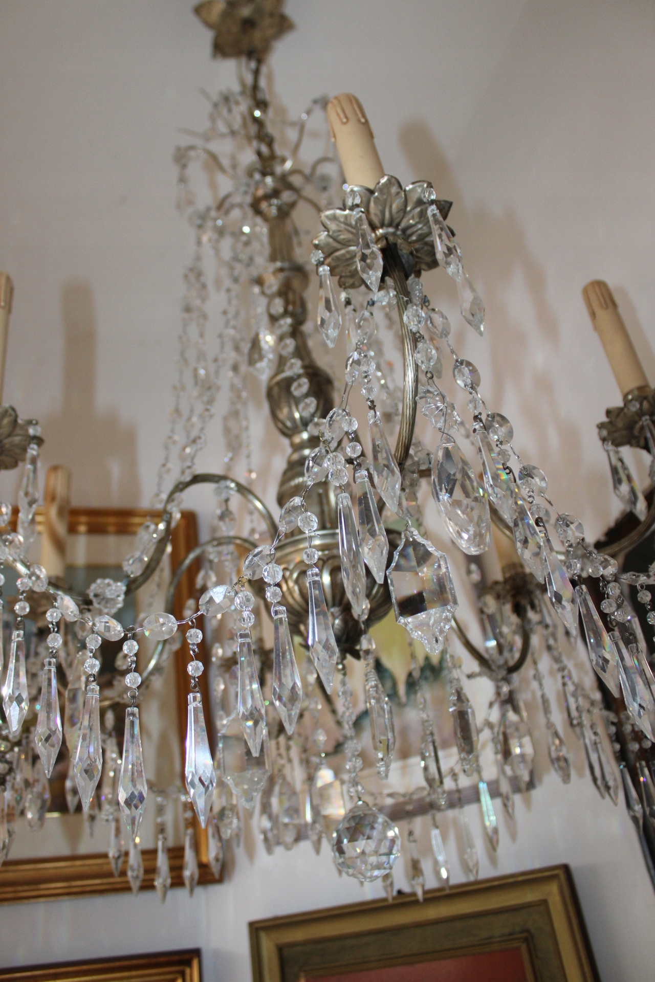 Старая итальянская хрустальная люстра Rococo, Серебряное строительство, гирлянды