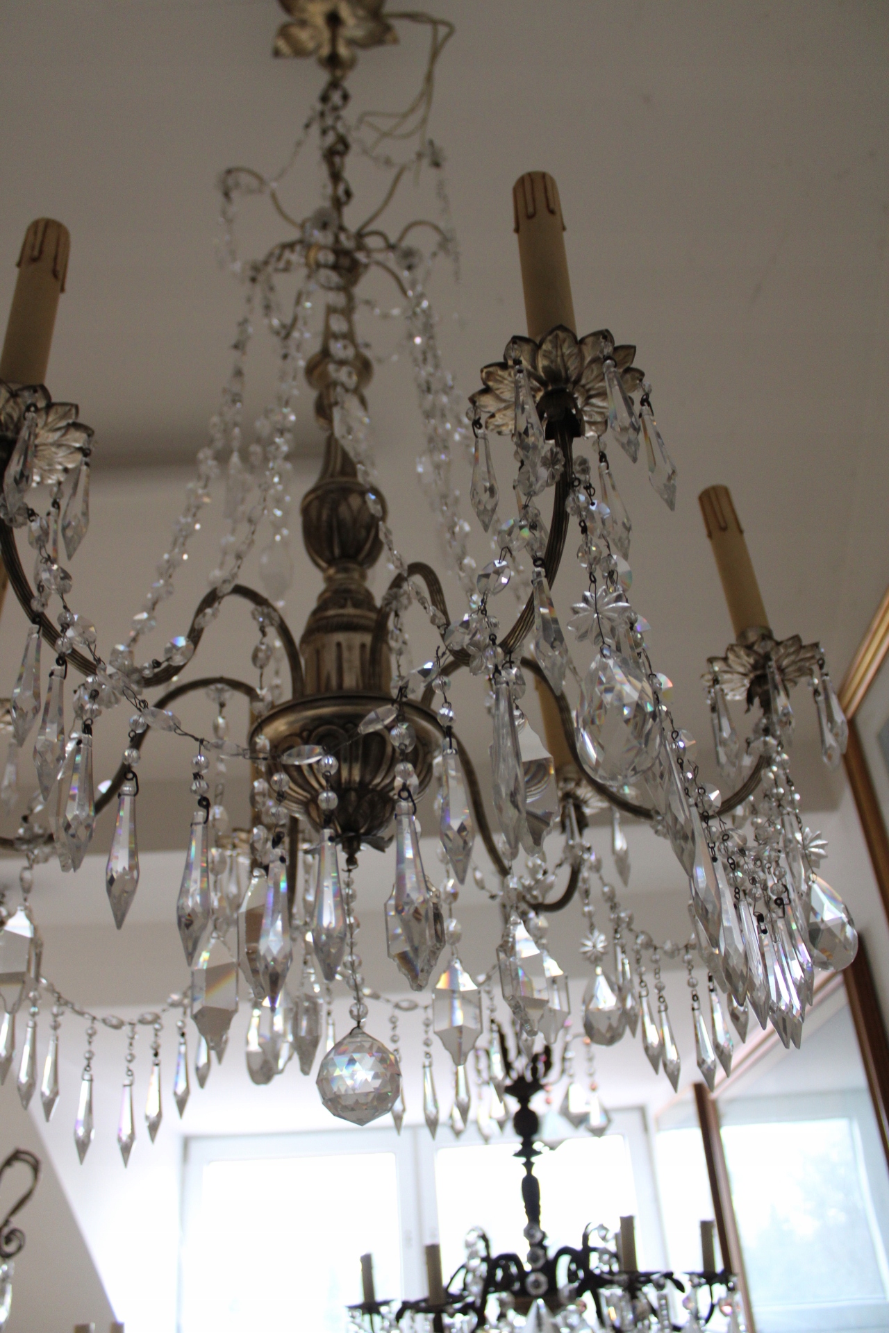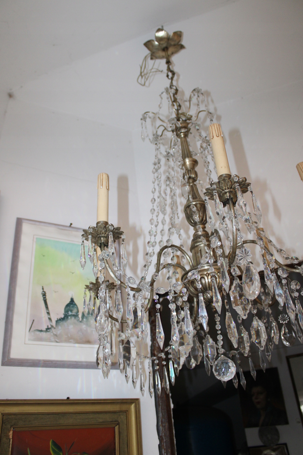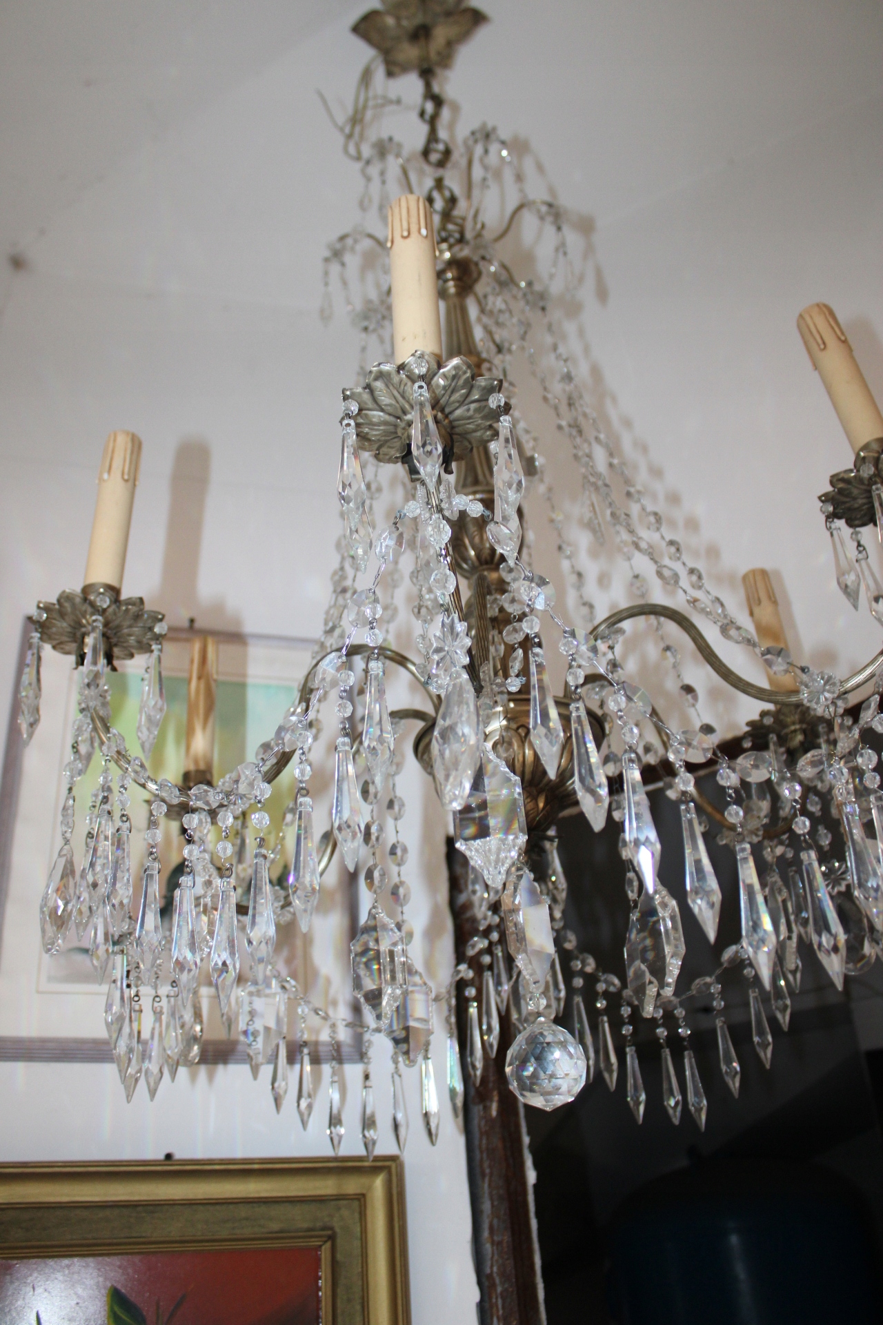 Старая итальянская хрустальная люстра Rococo, Серебряное строительство, гирлянды