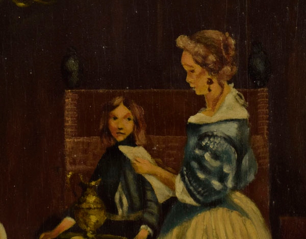 Старая живопись, общая сцена в гостиной, масло, 62,5x52,5 см.
