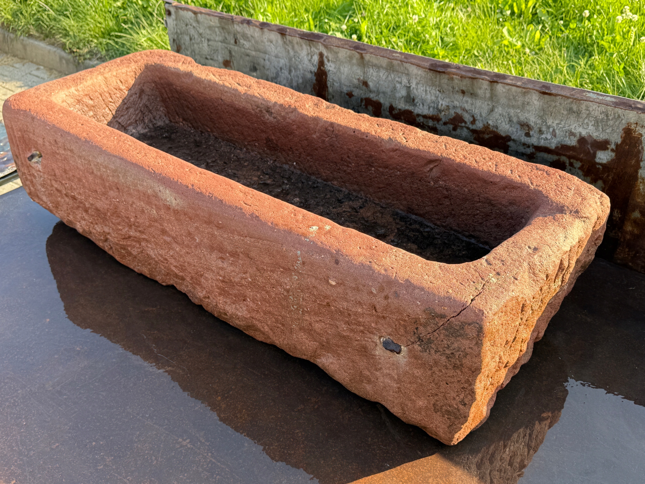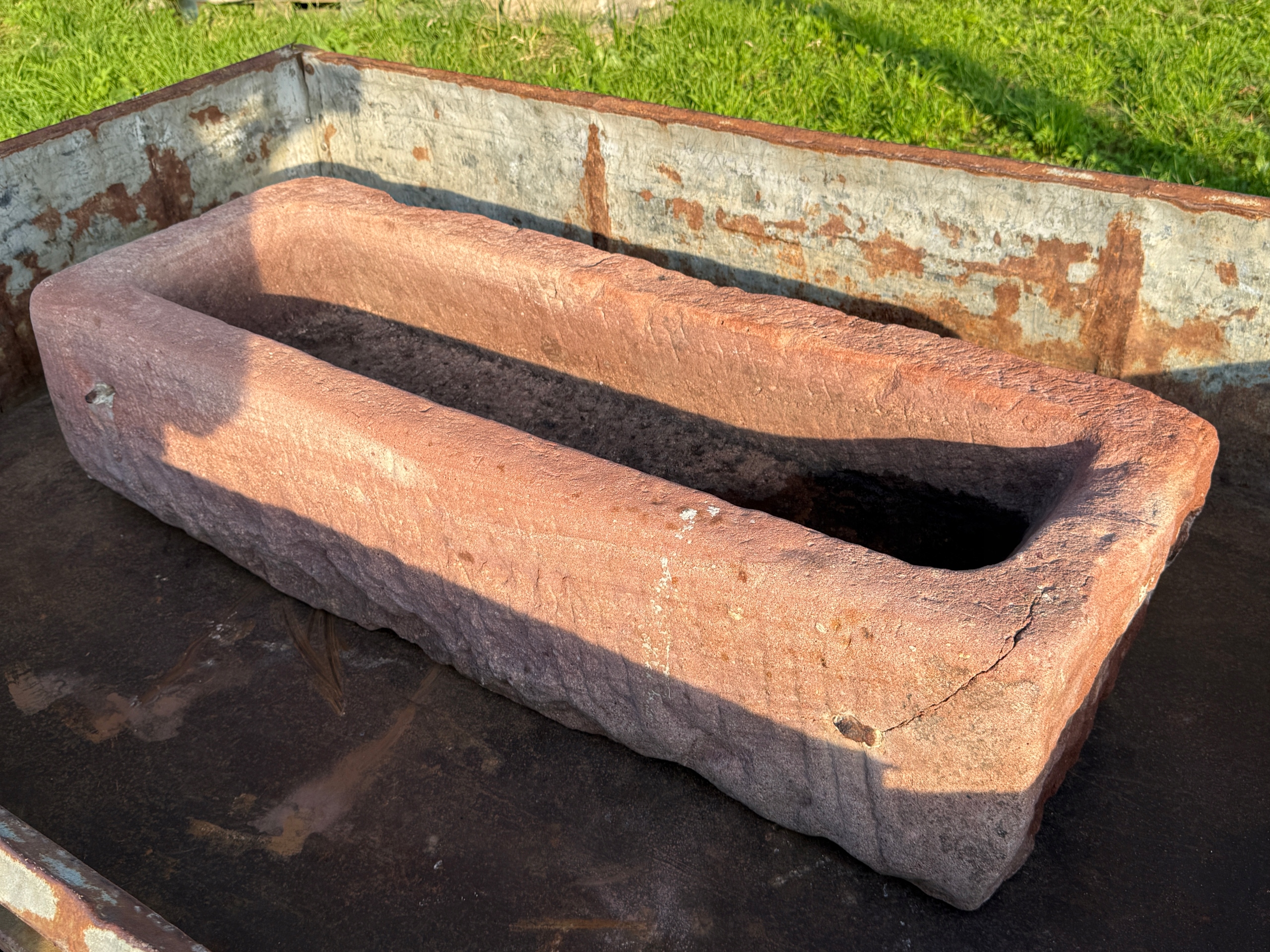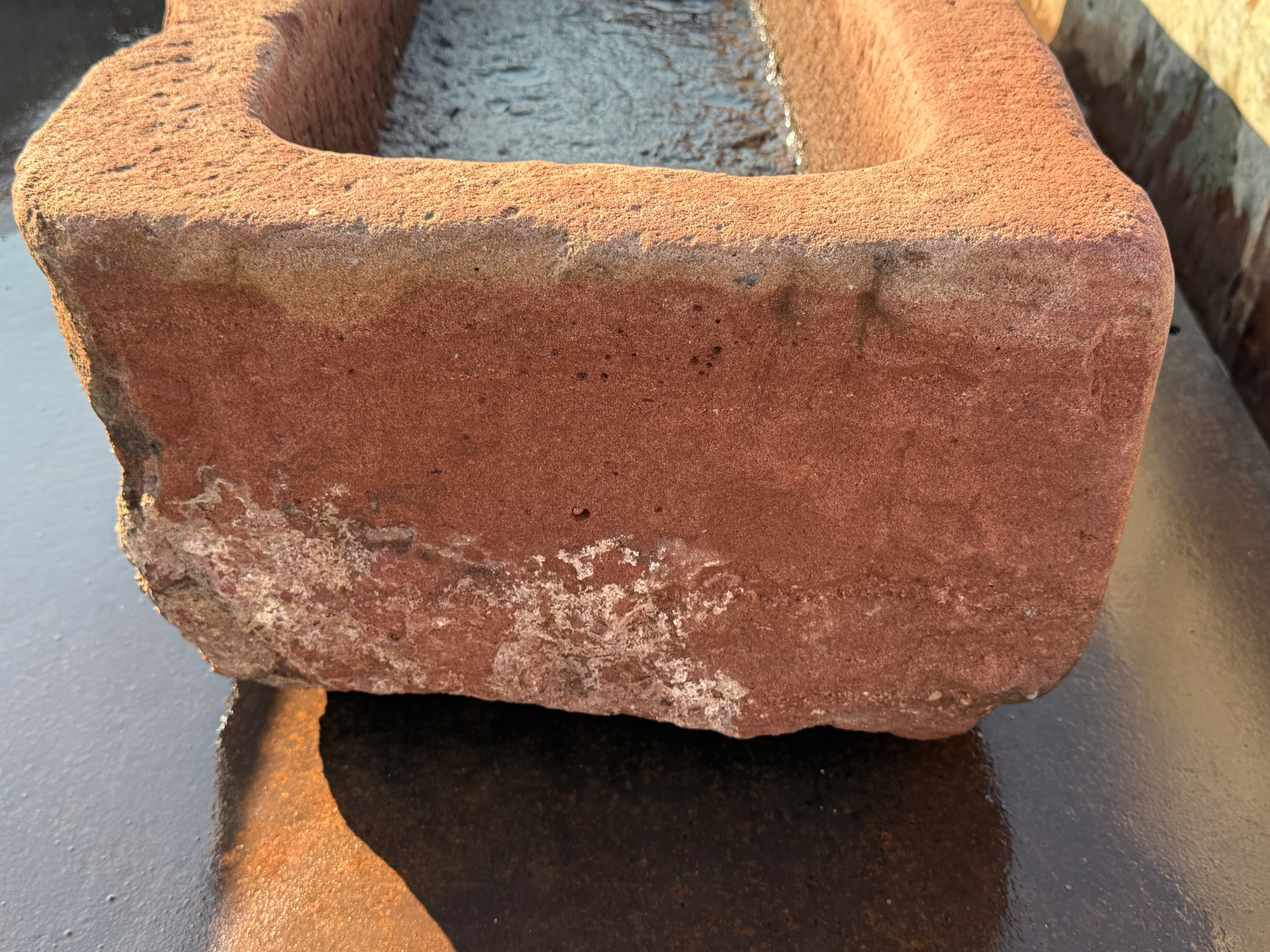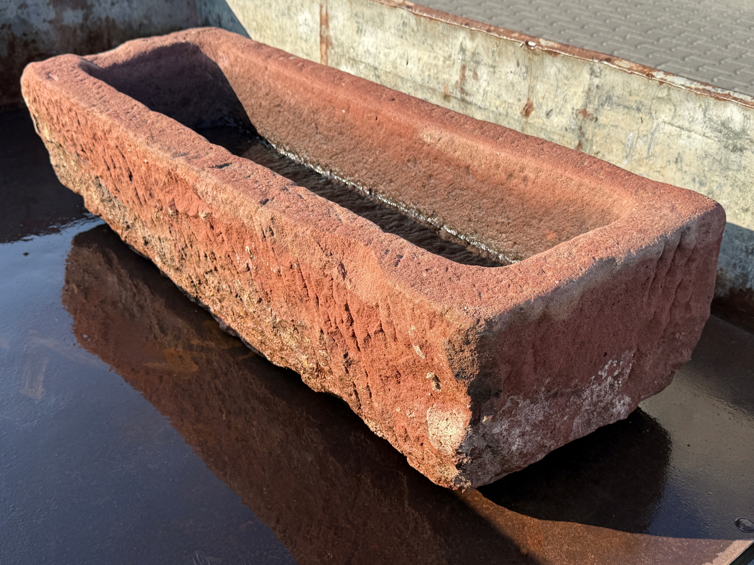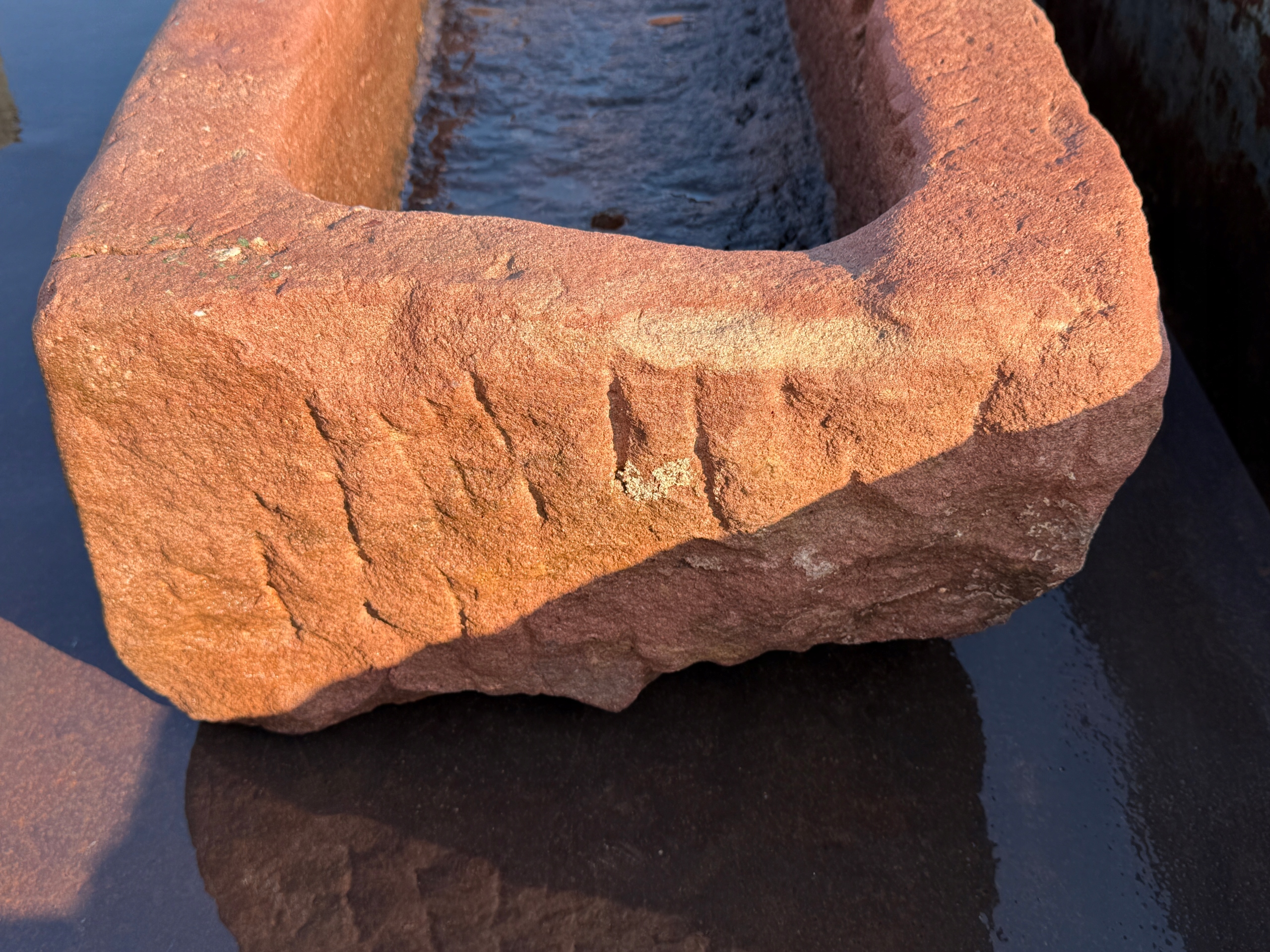 Тема продажи -старый, оригинальный, предварительный каменный желоб. Красное песчаное русло реки. Интересная копия с толстым дном и сторонами.