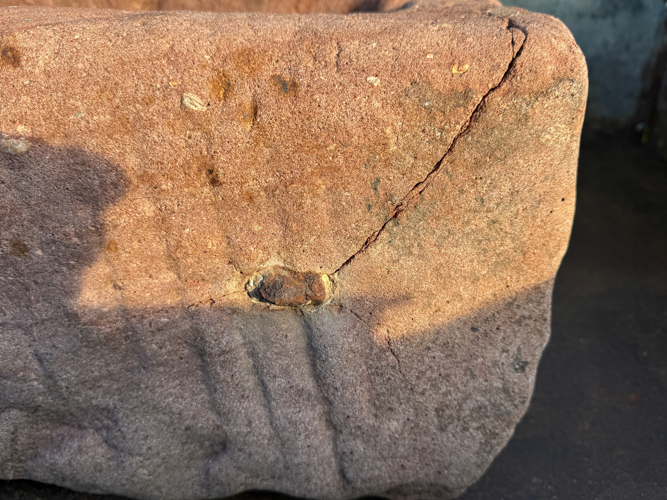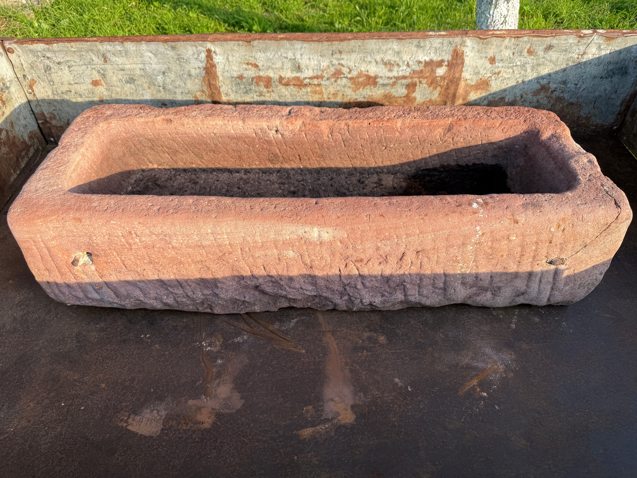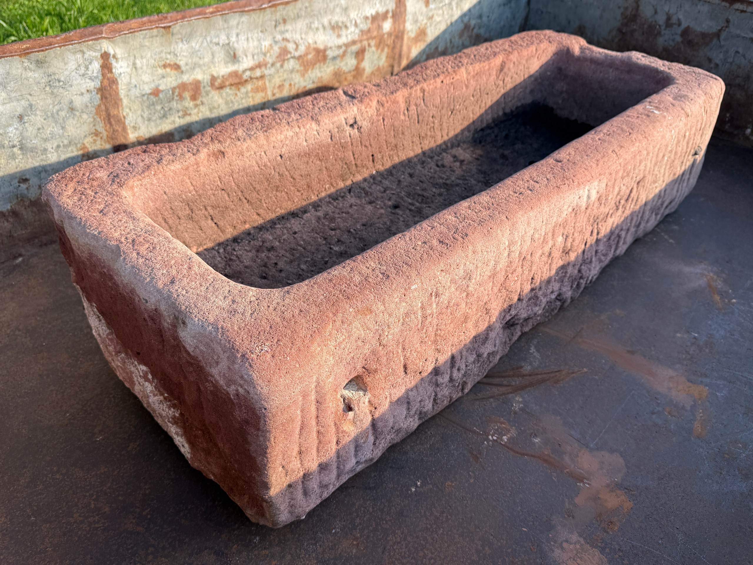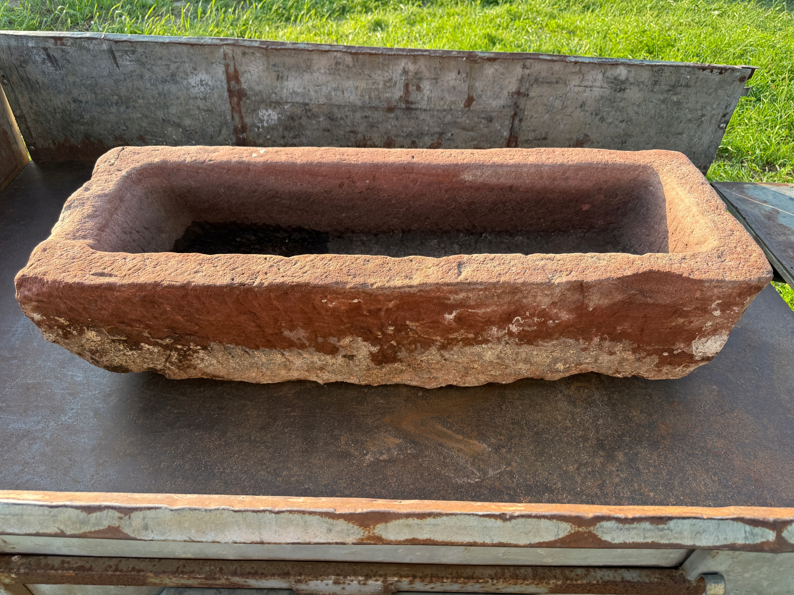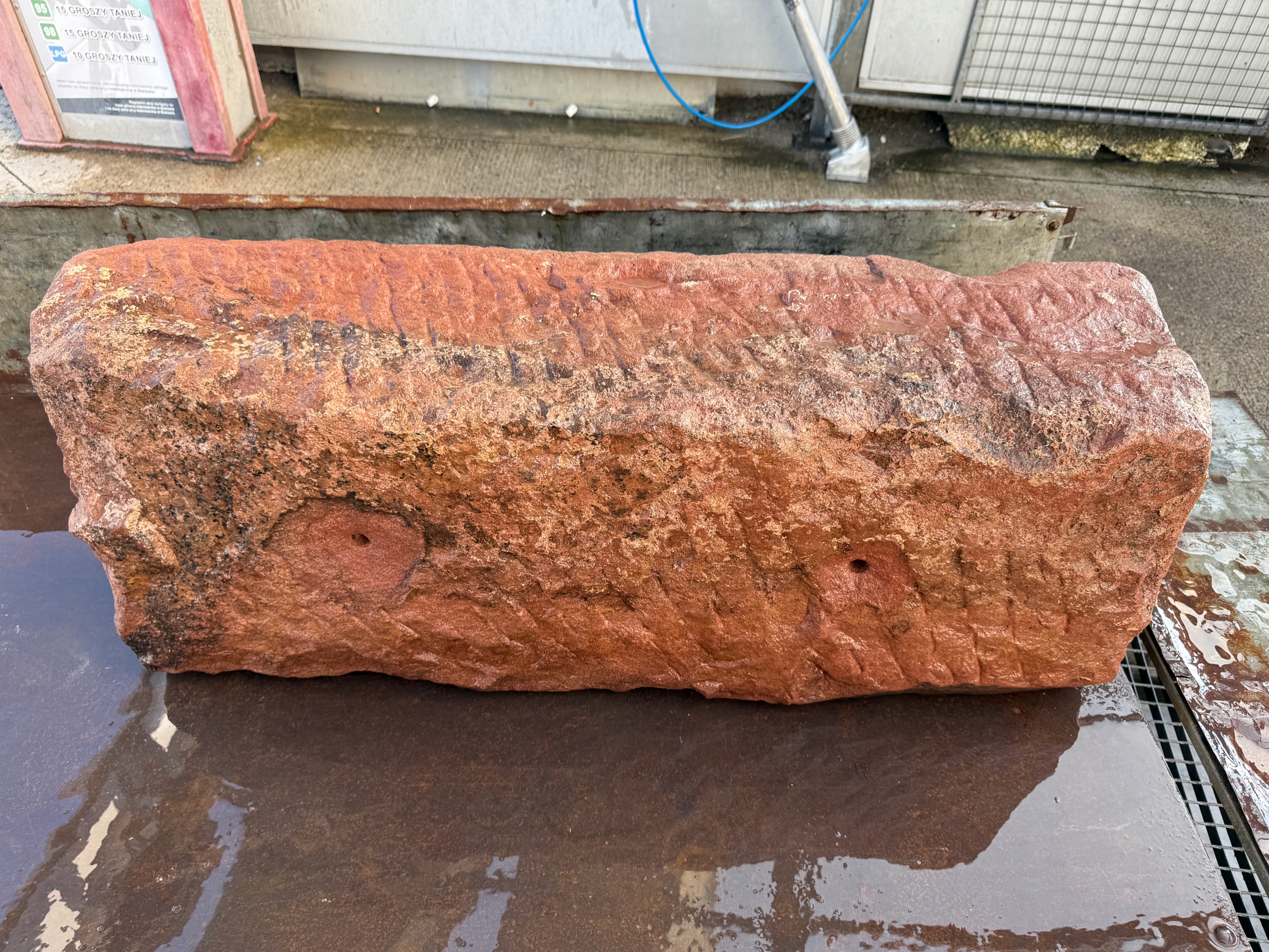 Тема продажи -старый, оригинальный, предварительный каменный желоб. Красное песчаное русло реки. Интересная копия с толстым дном и сторонами.