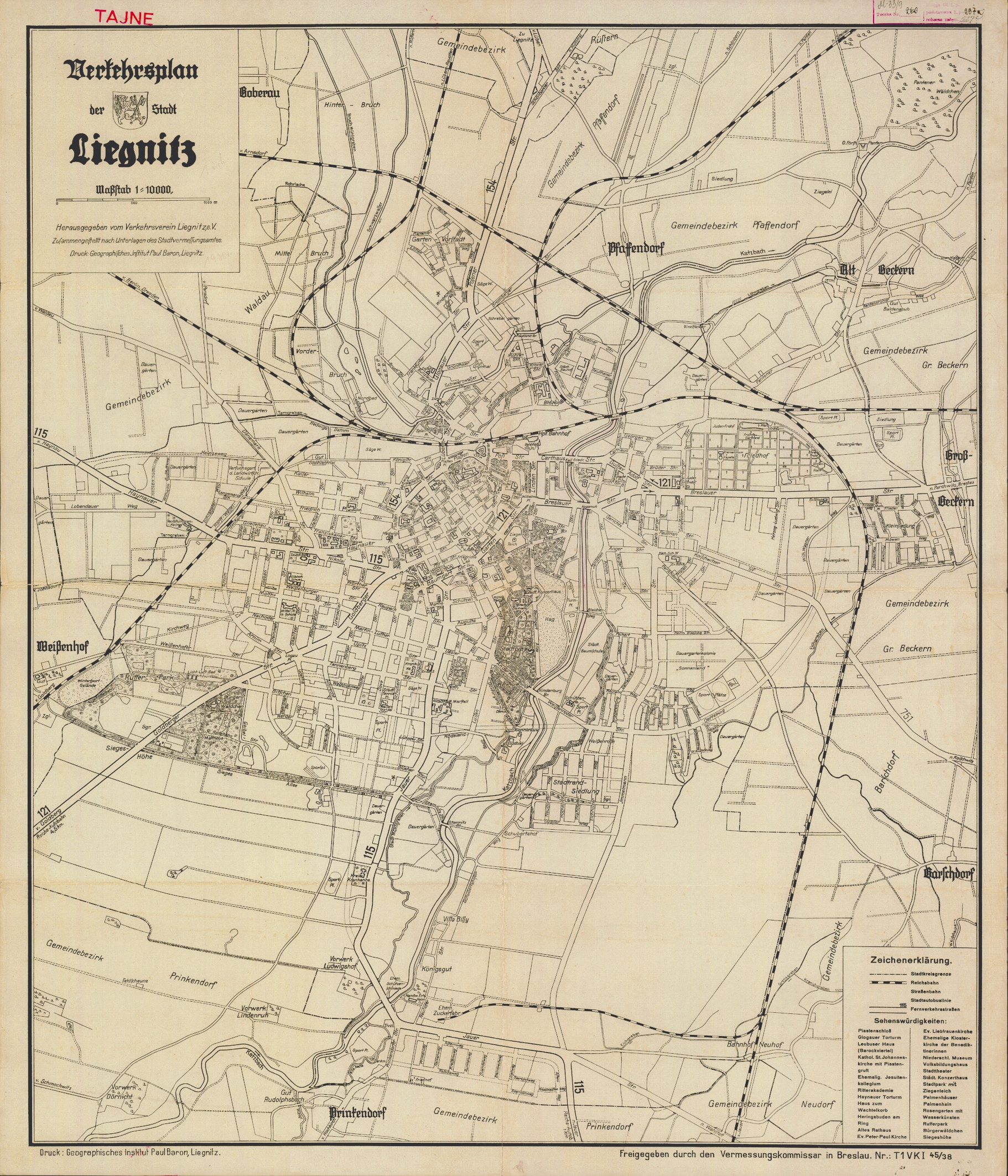 СТАРИЙ ПЛАН LEGNICA Liegnitz 1938, 70x60см