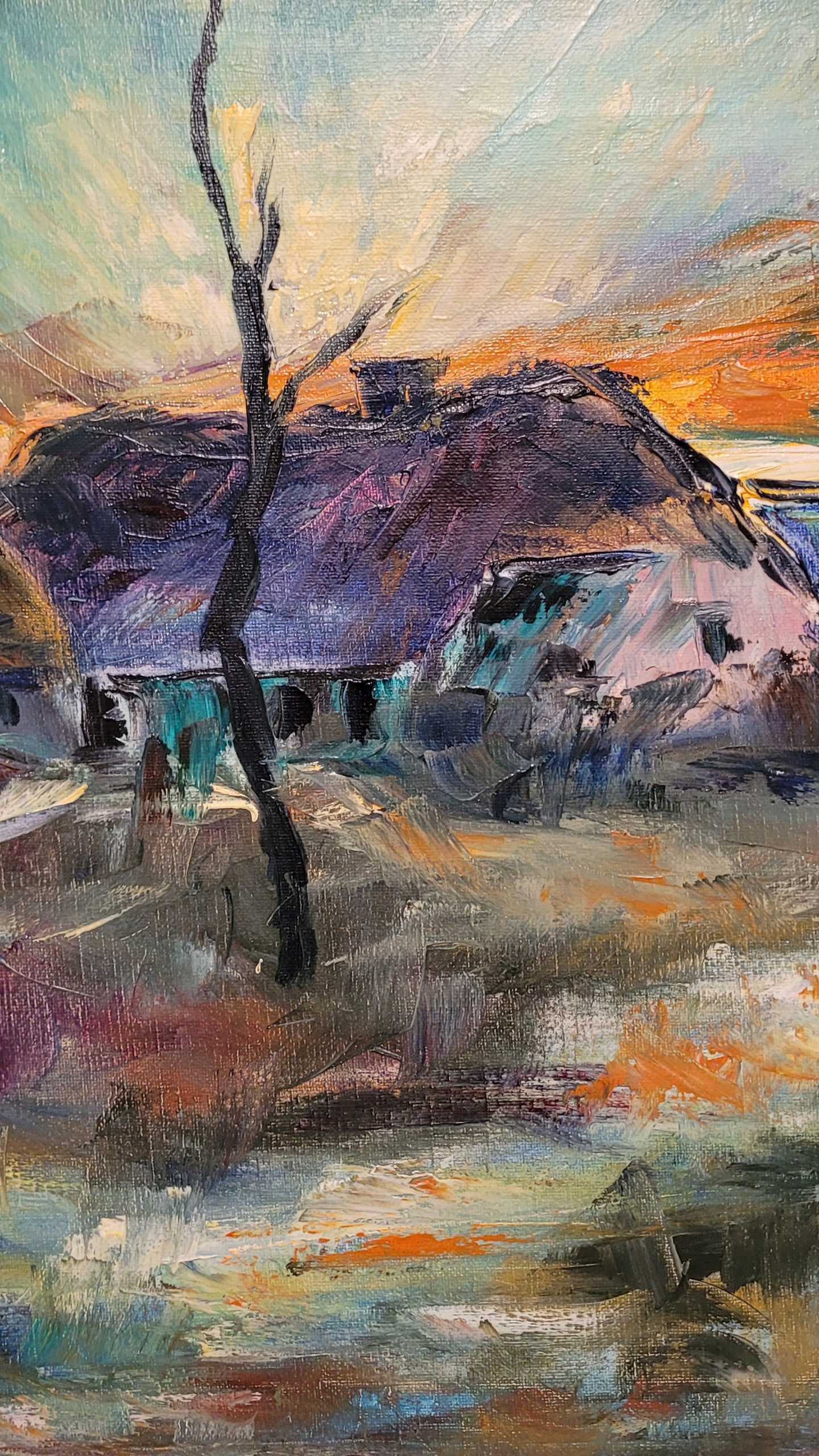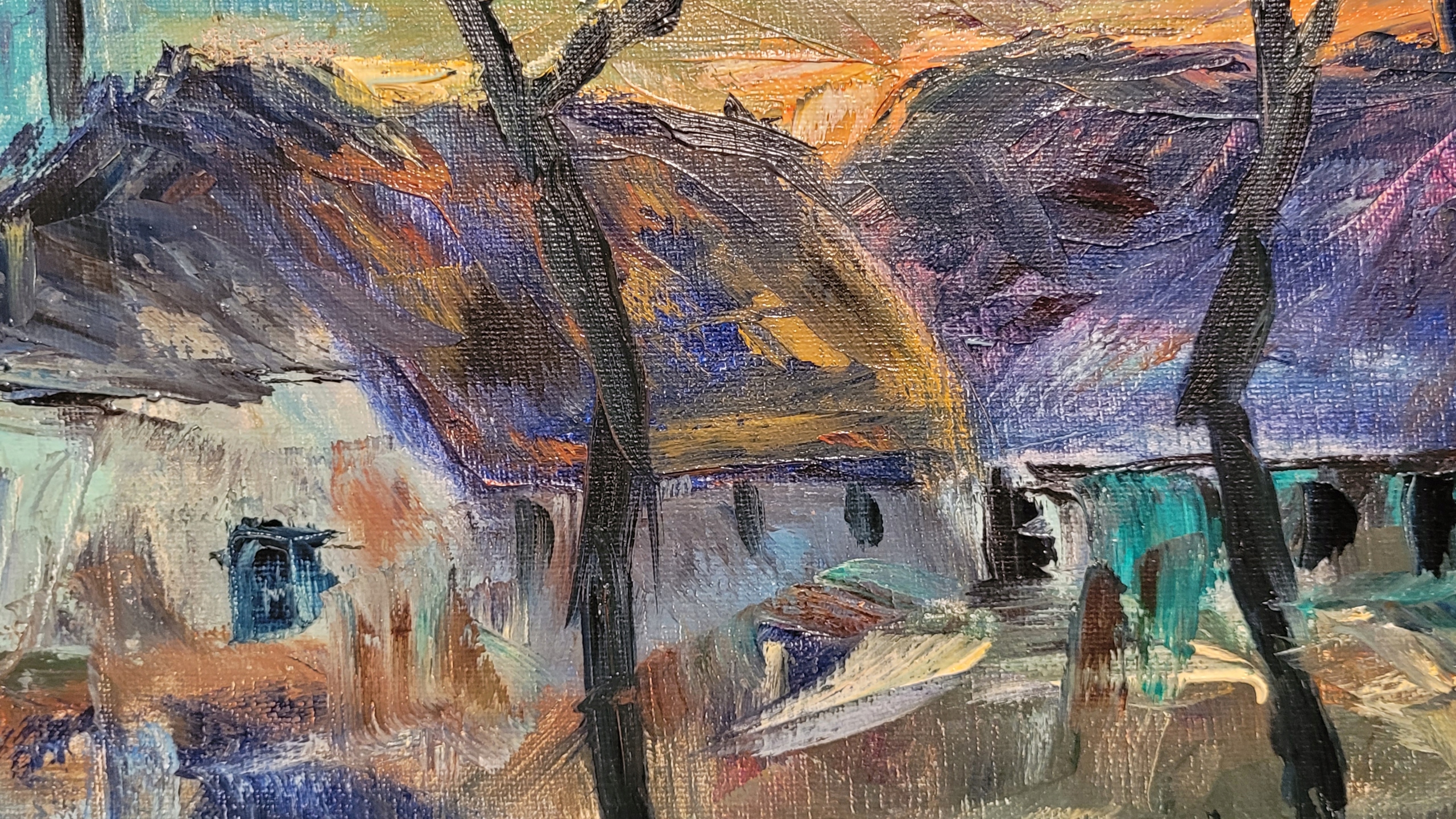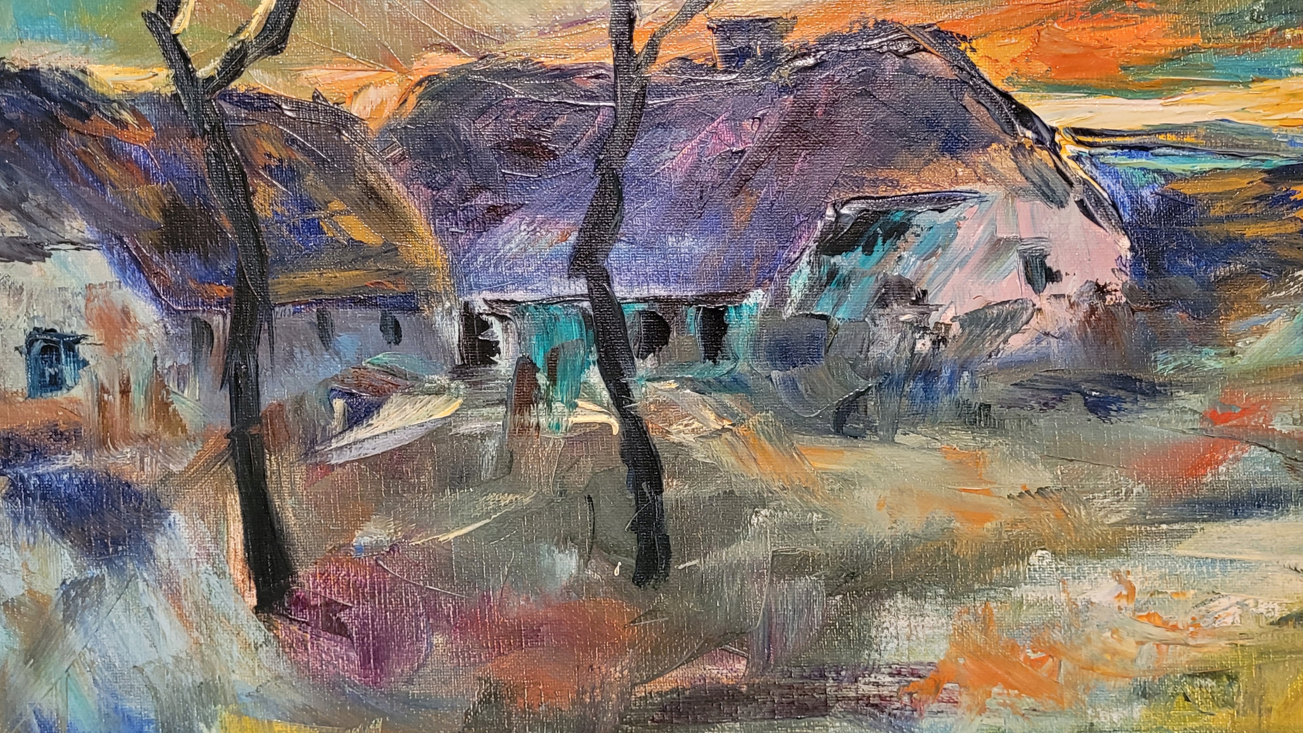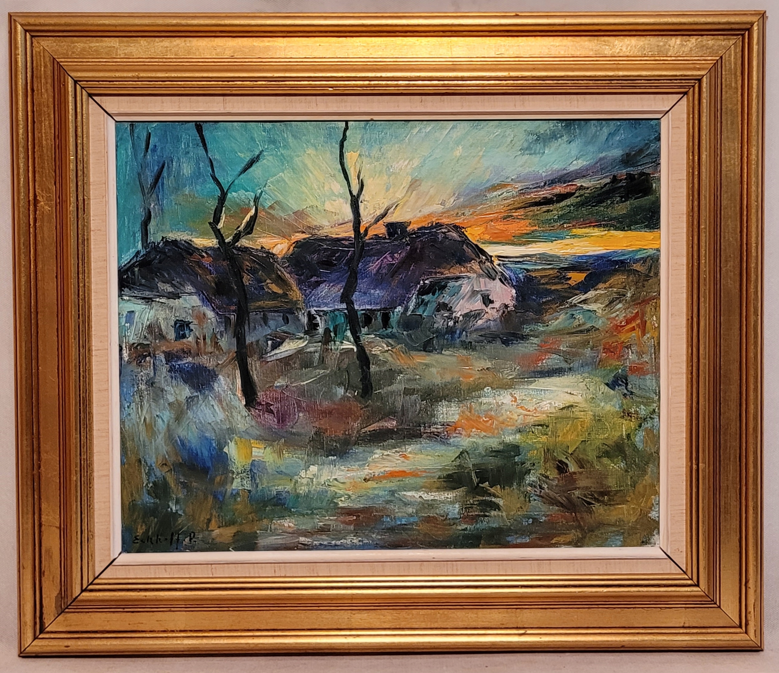 Тема продажи - красивая старая нефтяная картина "Старая среда обитания".