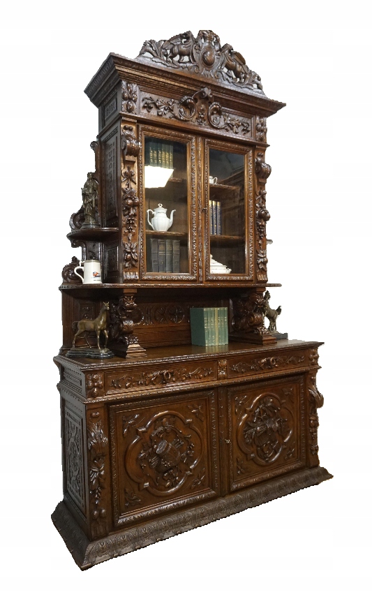 СТАРИЙ ЩЕДРО РІЗЬБЛЕНИЙ СЕРВАНТ ЗІ СКЛІННЯМ ГРИФА ФРАНЦІЯ.