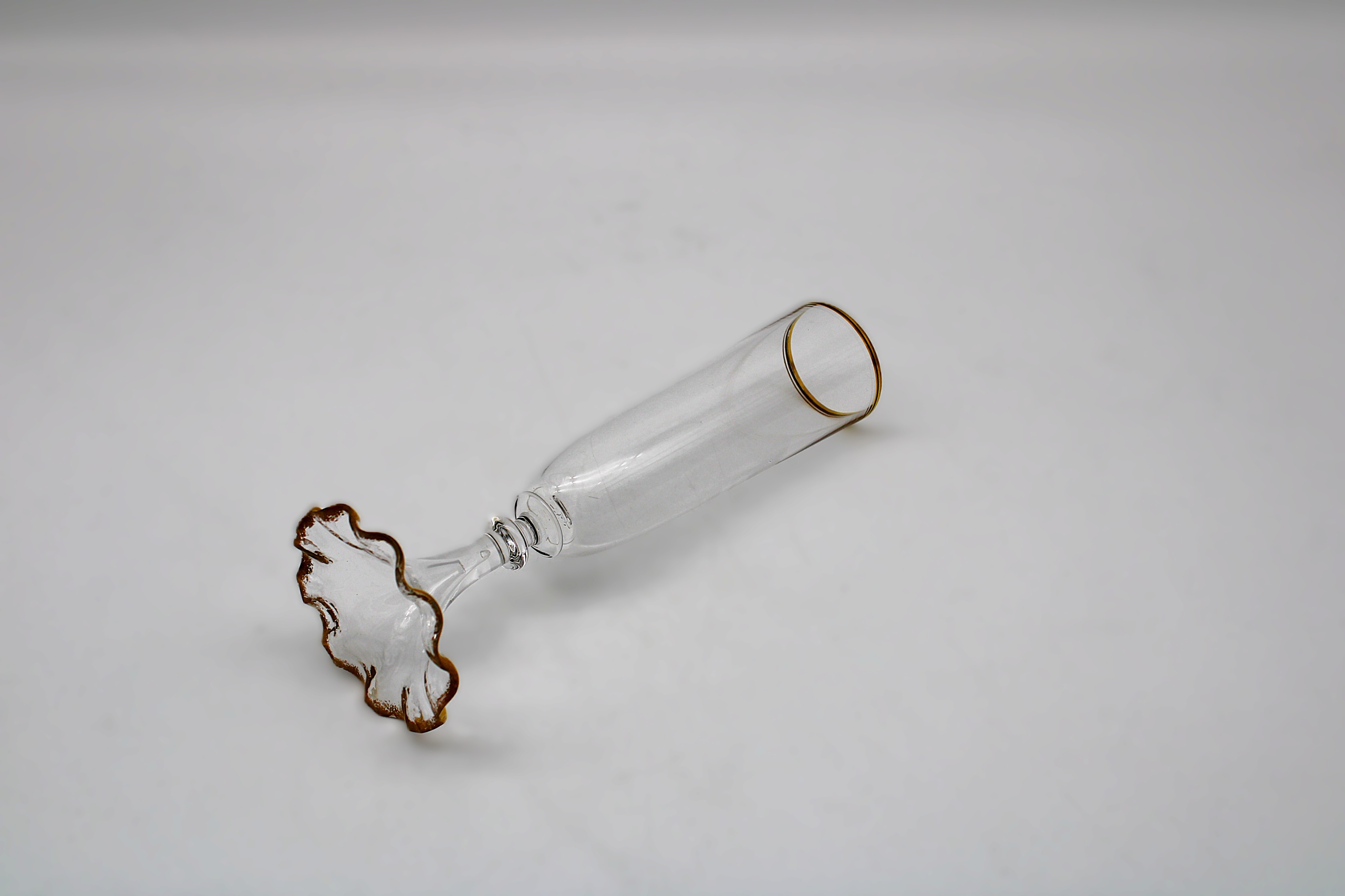 Я рекомендую старое древнее стекло шампанского, изготовленное в стеклянном заводе Józefina около 1900 года. Все условия ручной работы, такие как на сканировании очень хороших минимальных естественных временных абраминов при позолочнике