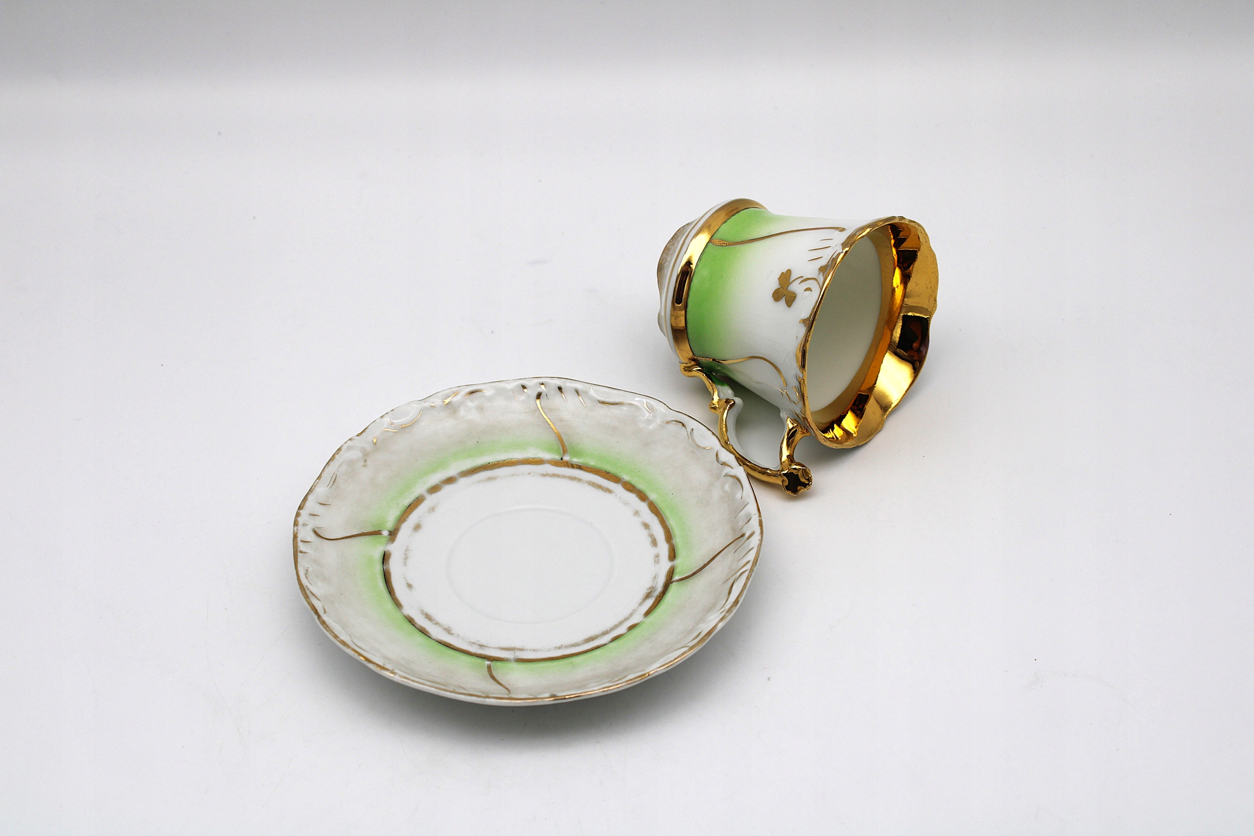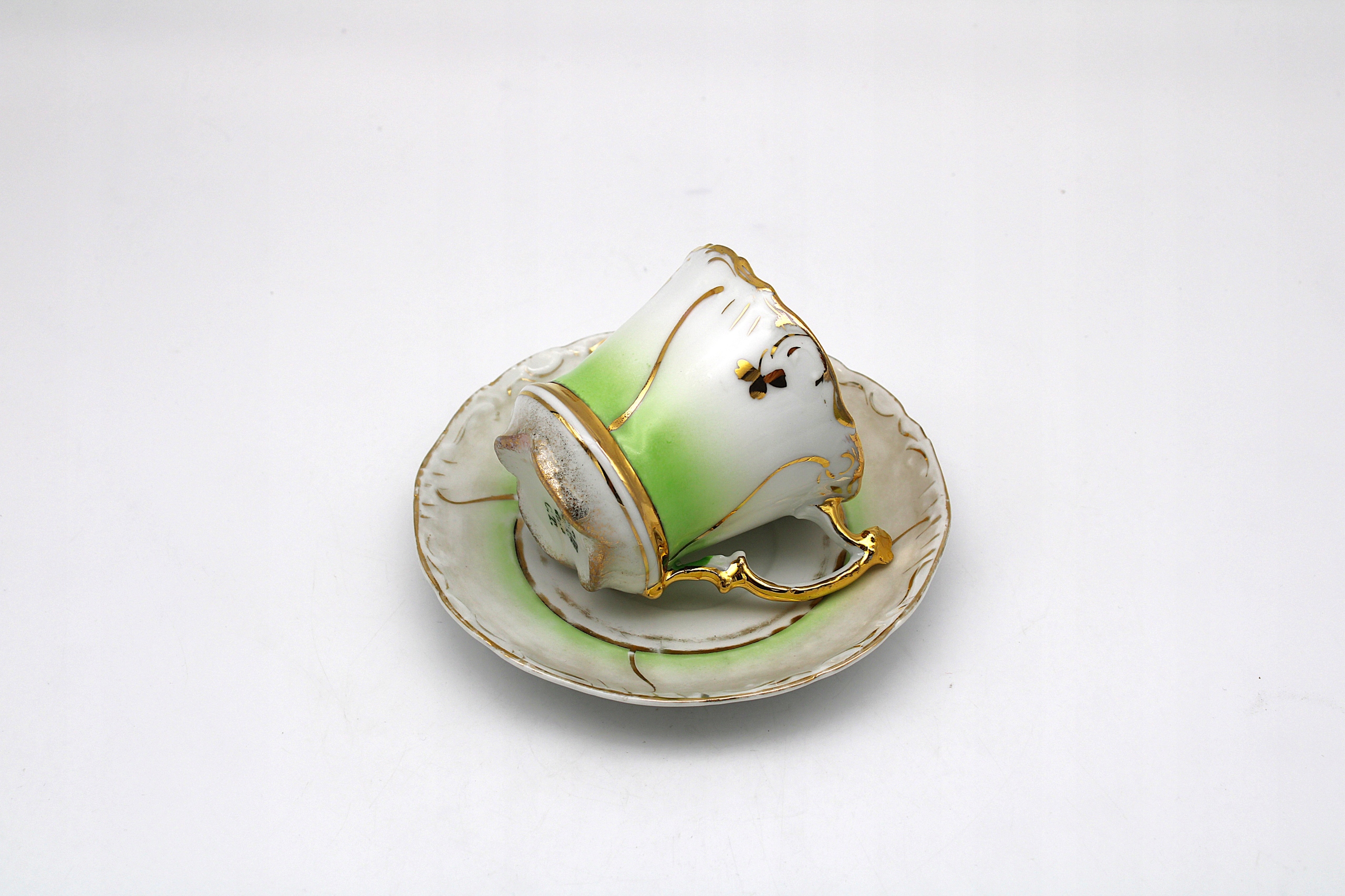 Я рекомендую старый антикварный набор кофе - чай Карл Тильш с фабрики Altwasser - Stary Zdrój Stary Silesia, сделанная между 1875 - 1900, целое распределенное состояние, такое как на сканировании, имеет естественные временные абрации, показанные на фото и натуральных малых ошибках. ** Диаметр ноги - 4,5 см ** емкость - 150 мл