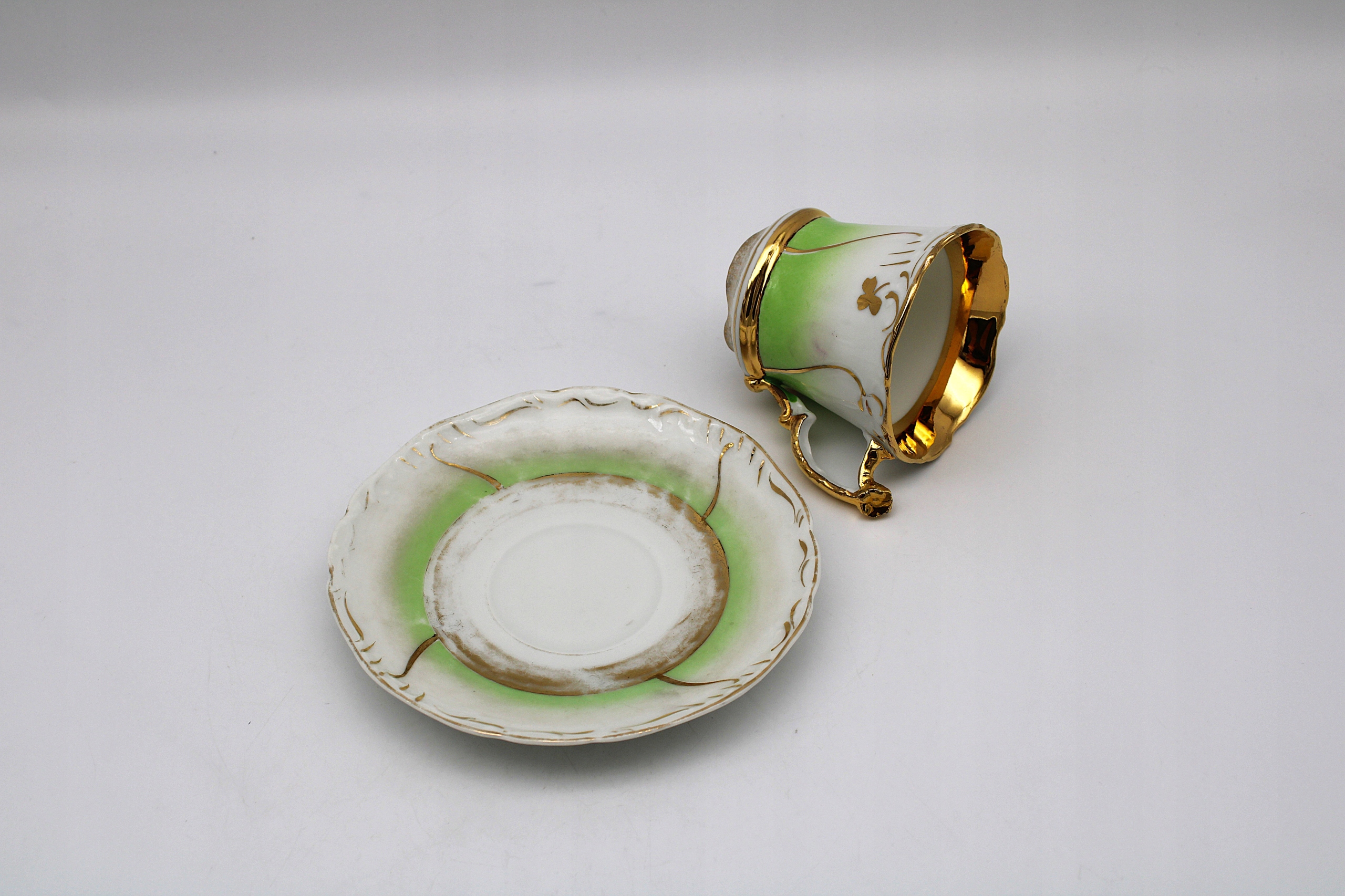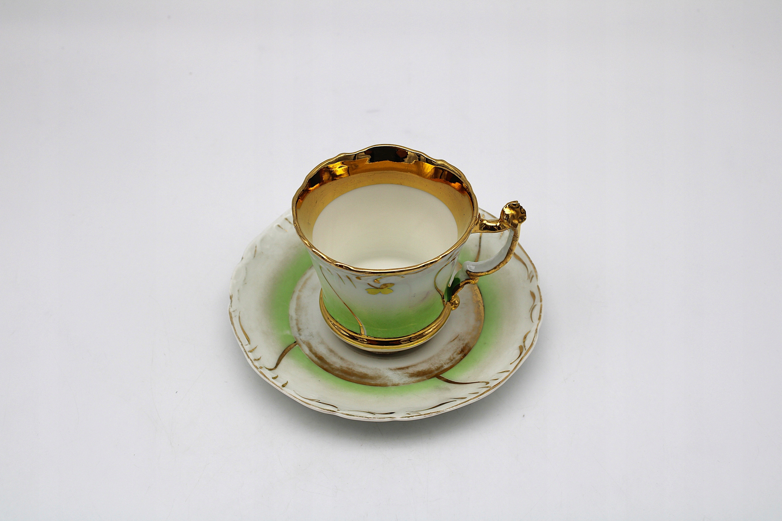 Я рекомендую старый антикварный набор кофе - чай Карл Тильш с фабрики Altwasser - Stary Zdrój Stary Silesia, сделанная между 1875 - 1900, целое распределенное состояние, такое как на сканировании, имеет естественные временные абрации, показанные на фото и натуральных малых ошибках. ** Диаметр ноги - 4,5 см ** емкость - 150 мл