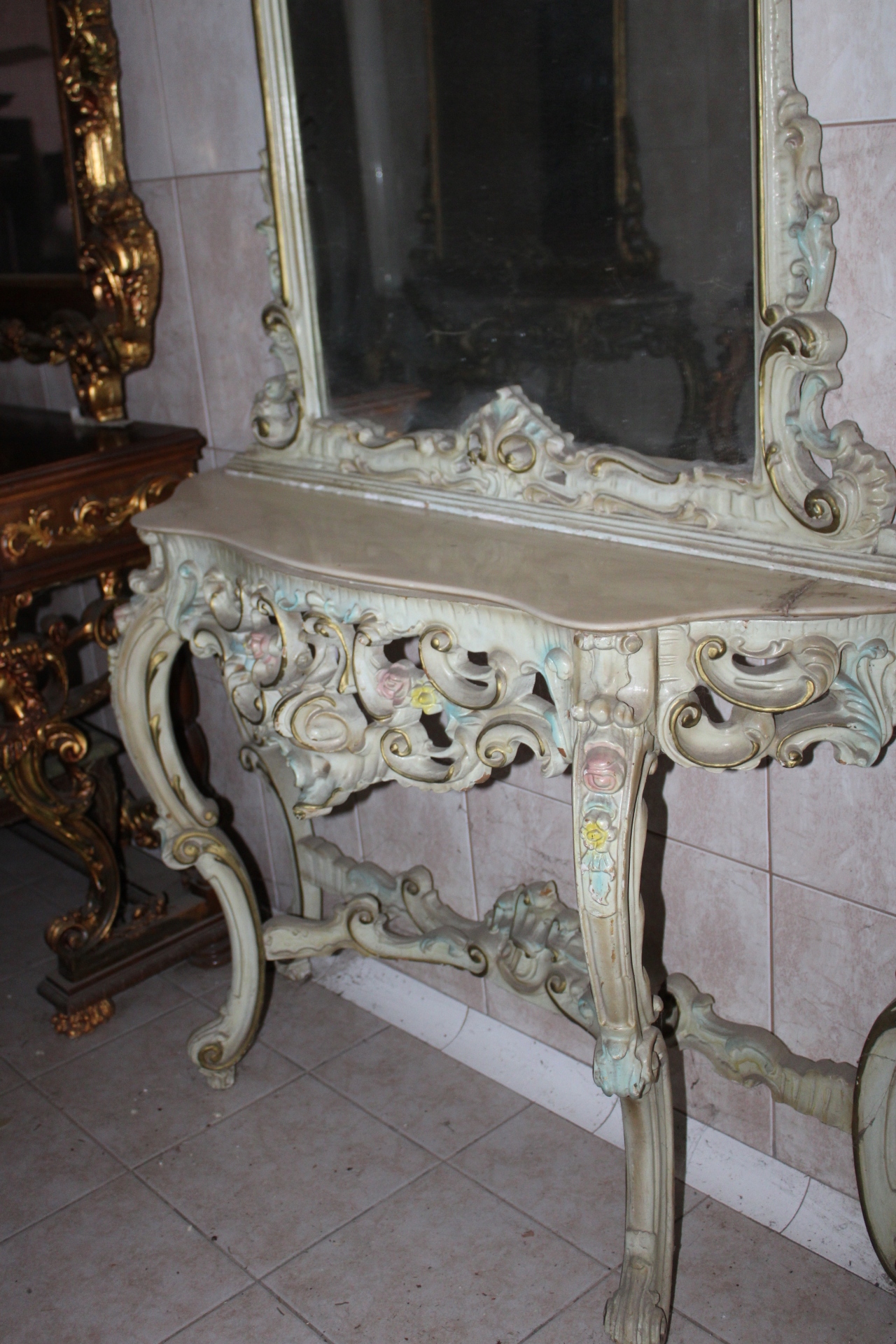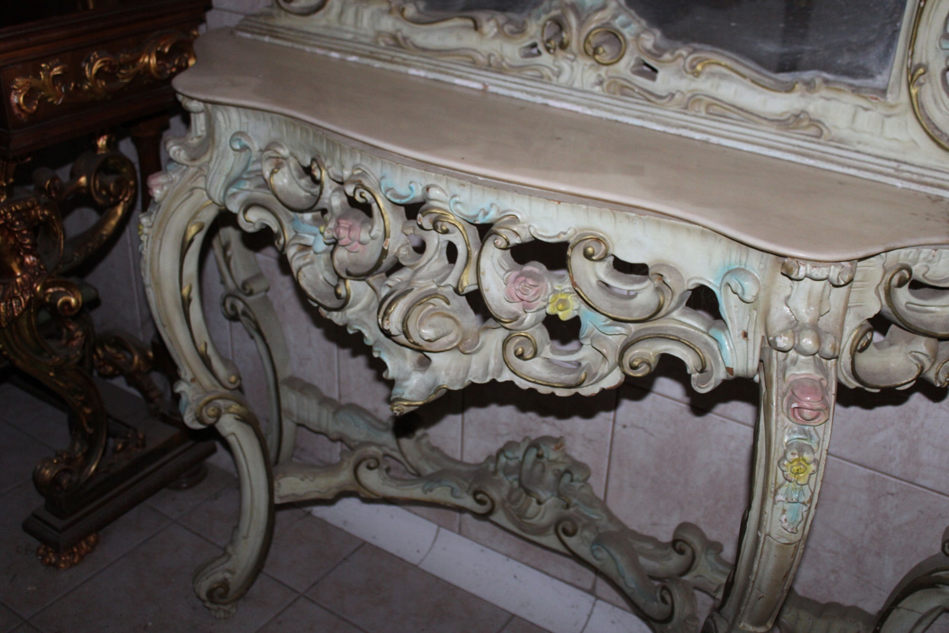 СТАРОВА ІТАЛІЙСЬКА КОНСОЛЬ З РІЗНОКОЛЬОРНИМ ДЗЕРКАЛОМ 1930-х
