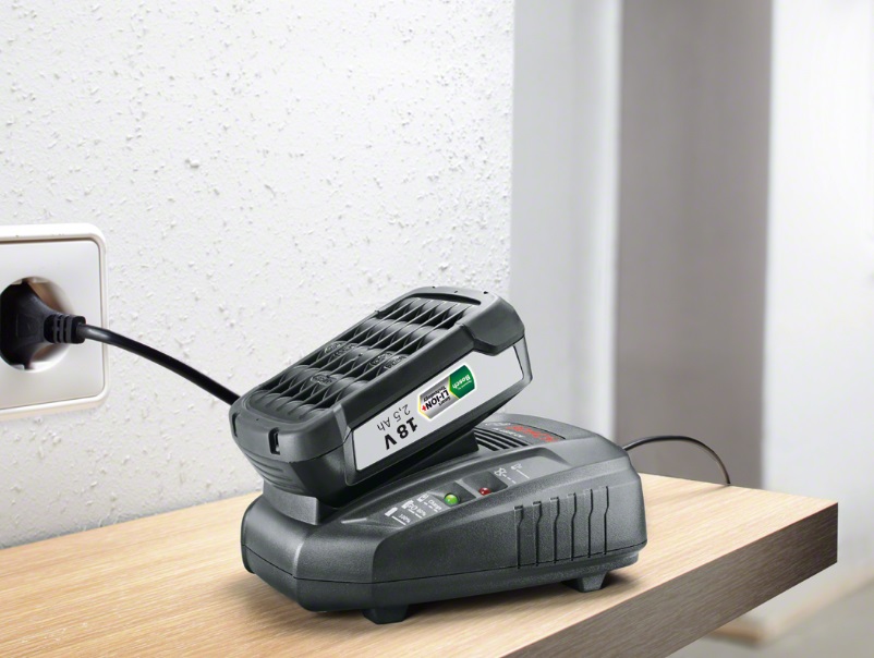Зарядное устройство AL 1830 CV от Bosch заряжает аккумуляторы всех домашних и садовых электроинструментов системы Power for ALL 18 В, а также все аккумуляторы 14,4 В от Bosch. Всего за 40 минут аккумулятор емкостью 2,5 Ач заряжается на 80% и готов к использованию. Интеллектуальная процедура зарядки защищает аккумулятор во время зарядки, обеспечивая длительный срок службы. Красно-зеленый индикатор батареи информирует о текущем состоянии заряда или предупреждает, когда батарею не следует заряжать из-за слишком высокой температуры.