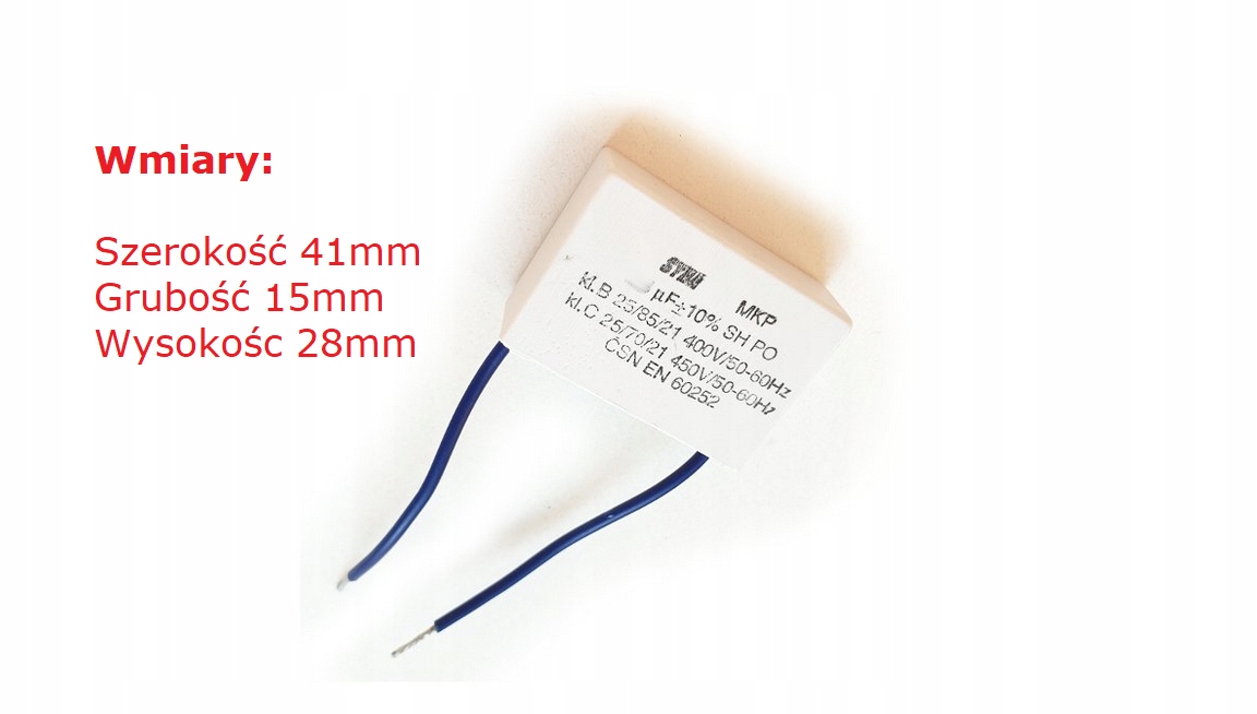 Конденсаторы для электродвигателей предназначены для работы в цепях переменного тока напряжением 230В, частотой 50Гц. В основном используется в однофазных и трехфазных двигателях, питающихся однофазным током. Рабочие конденсаторы – это конденсаторы, предназначенные для продолжительной работы с двигателем с целью улучшения значения cos phi. В трехфазных двигателях, питающихся от однофазной сети, наличие третьей фазы обеспечивает конденсатор.