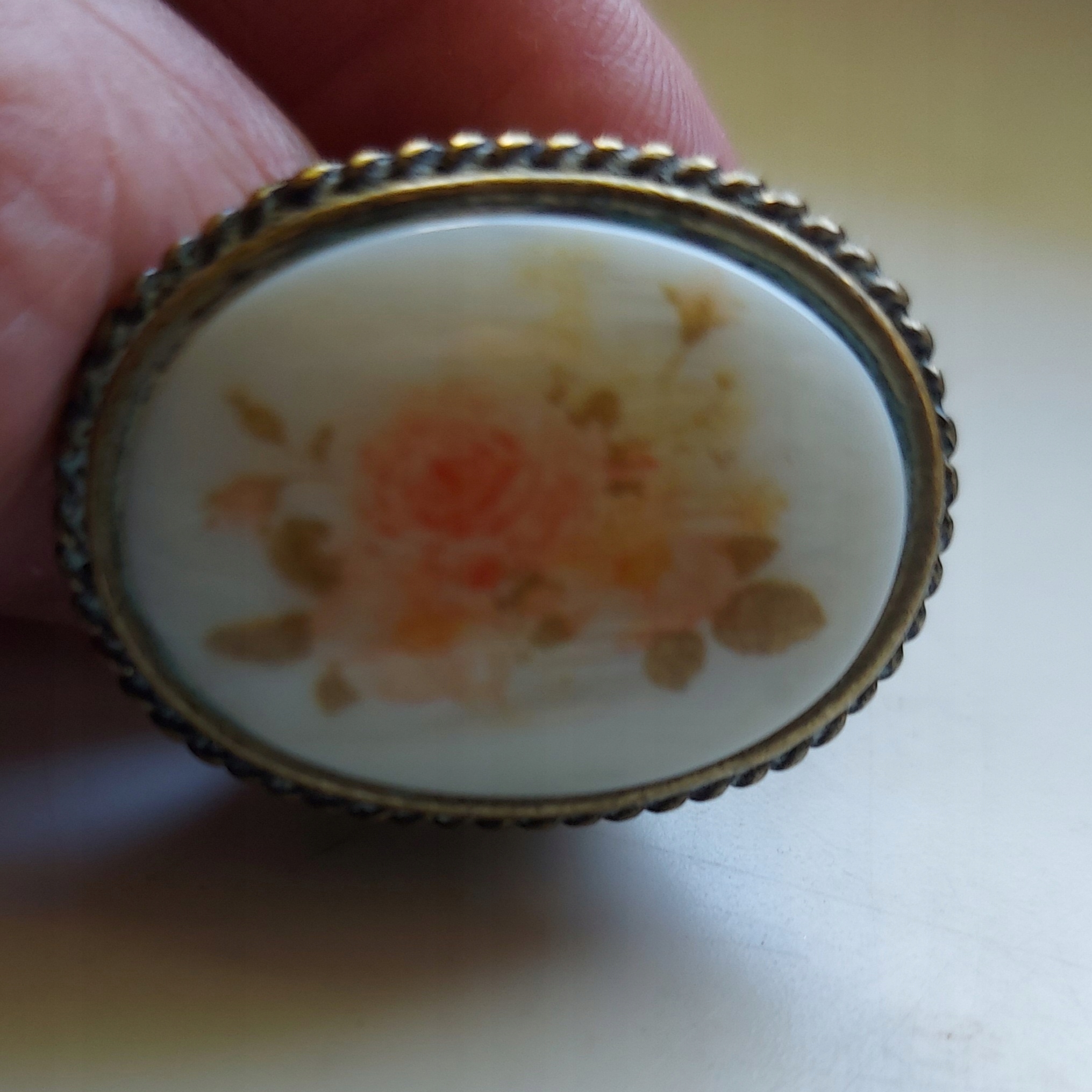 Stary pierścionek - oczko ceramiczne - mosiądz