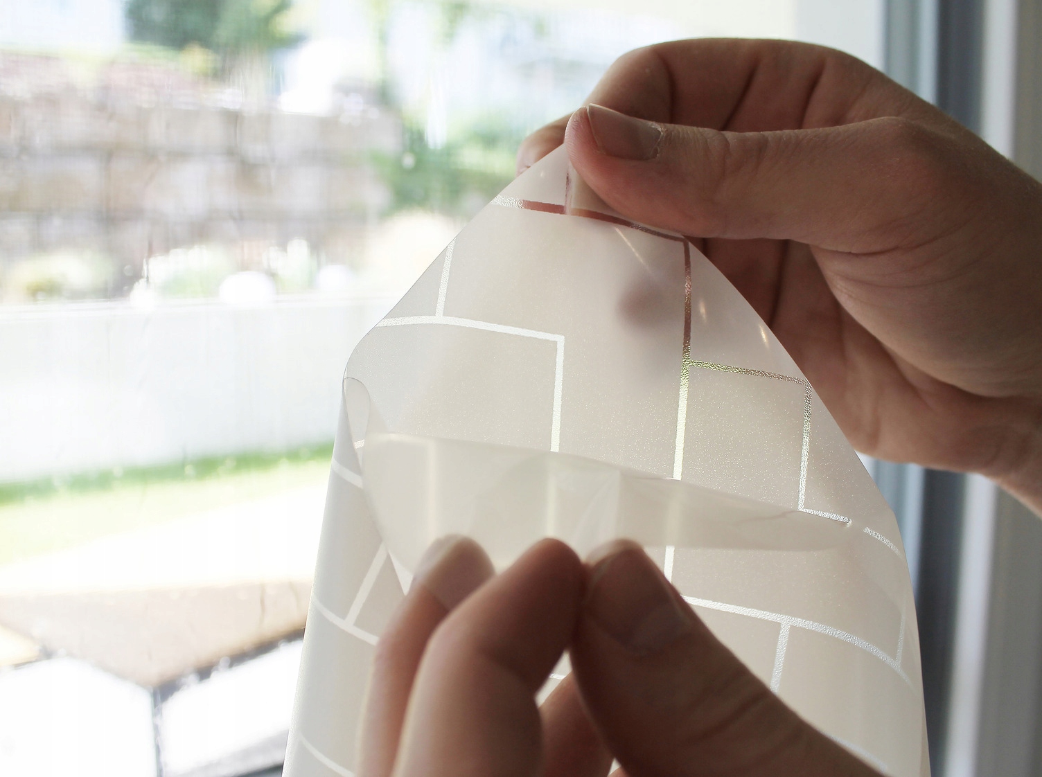 Снимайте защитную пленку непосредственно перед приклеиванием фольги к стеклу.
