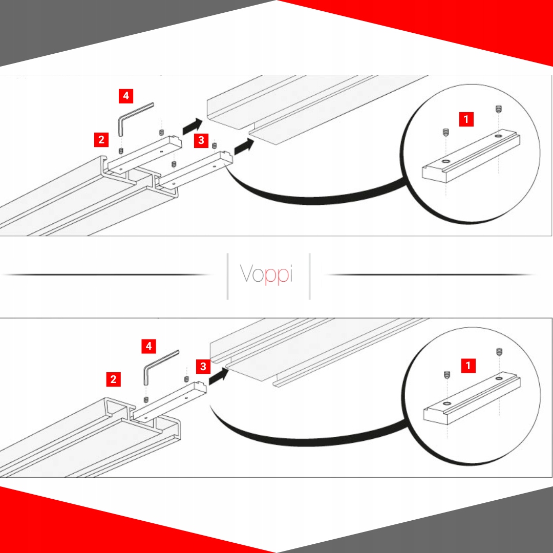 5⃣ Если вы купили комбинированный рельс, сначала подключите профили. Инструкции можно найти ниже.