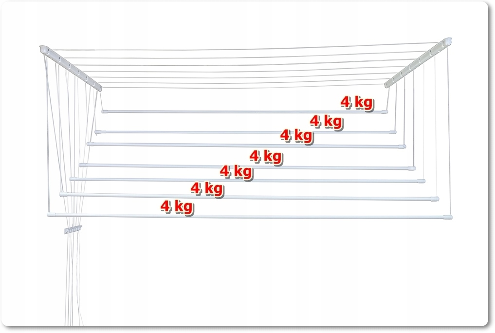 Этой прочности достаточно, чтобы развешивать стандартное повседневное белье, не беспокоясь о долговечности сушилки. . Возможна точечная нагрузка до 1 кг на стержень без видимого прогиба стержня.