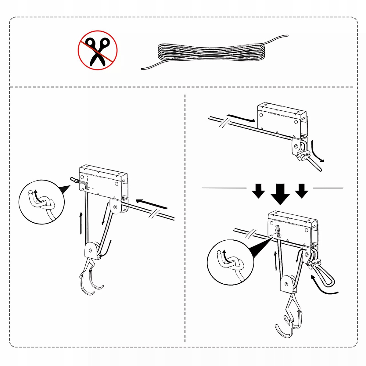 - После установки ручки, вы можете сразу же начать вешать велосипед - один крючок на рулевом колесе, а другой под седлом. Используя удобную веревочную ручку, подберите велосипед, а затем отрегулируйте кабельный тормоз и прикрепите кабель к стене. Ваш велосипед хранится безопасно и экономит место!