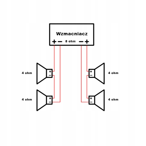 DBL -динамики имеют импеданс 4 Ом. В наборах с 4 динамиками подключите 2 динамики подряд к одному каналу.