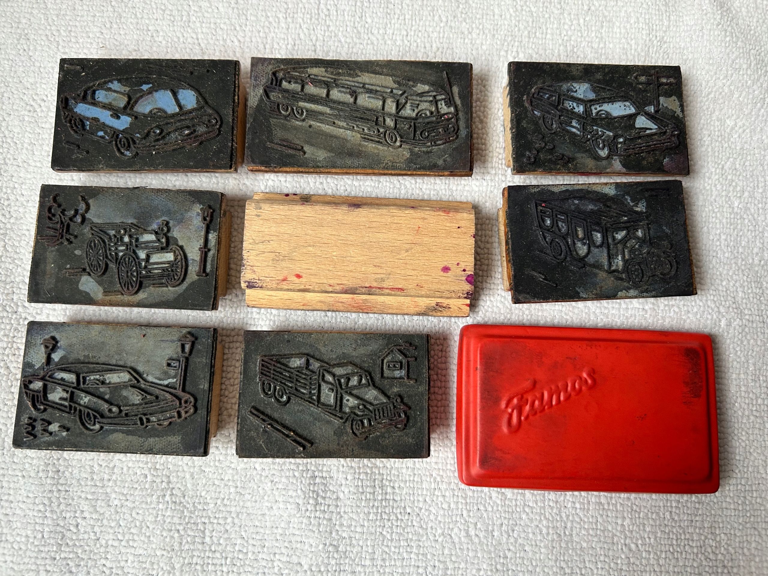 STEMPLE SAMOCHODY zabawkowe drewniane pieczątki