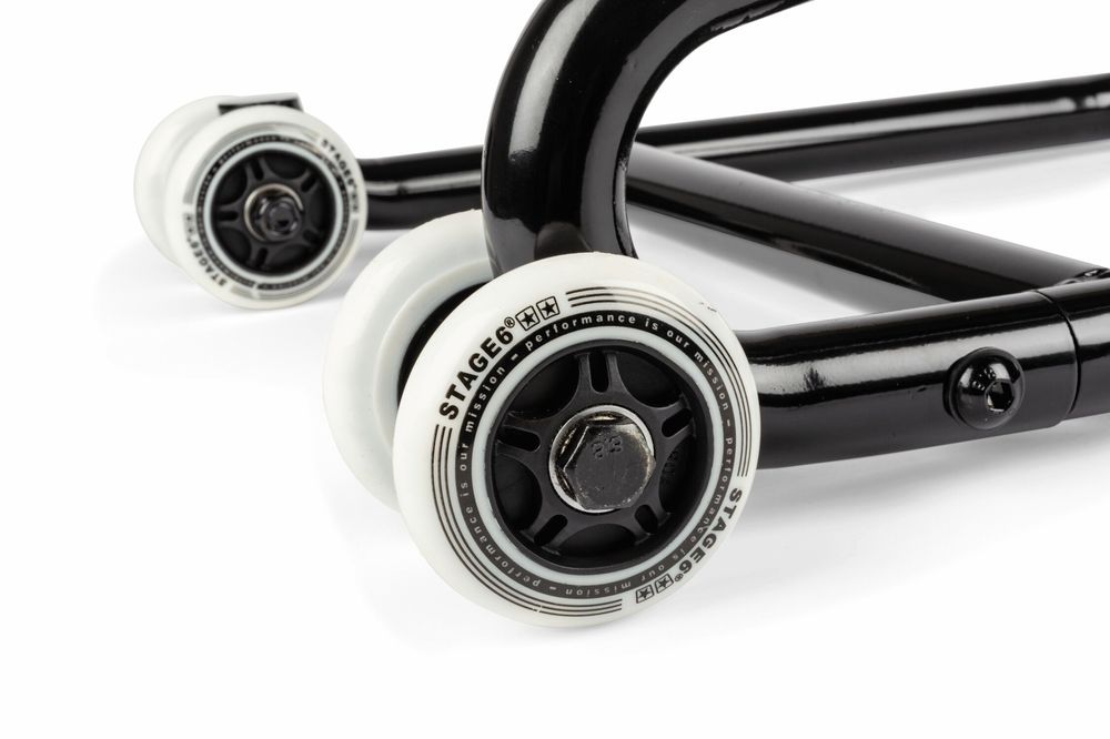 При использовании шин большего размера (например, 140/60-13 или 130/90-10) может случиться так, что колесо перестанет двигаться свободно. Однако подставку все равно можно использовать. MK3 поставляется не цельным, а состоящим из нескольких модульных частей. Установка очень проста!