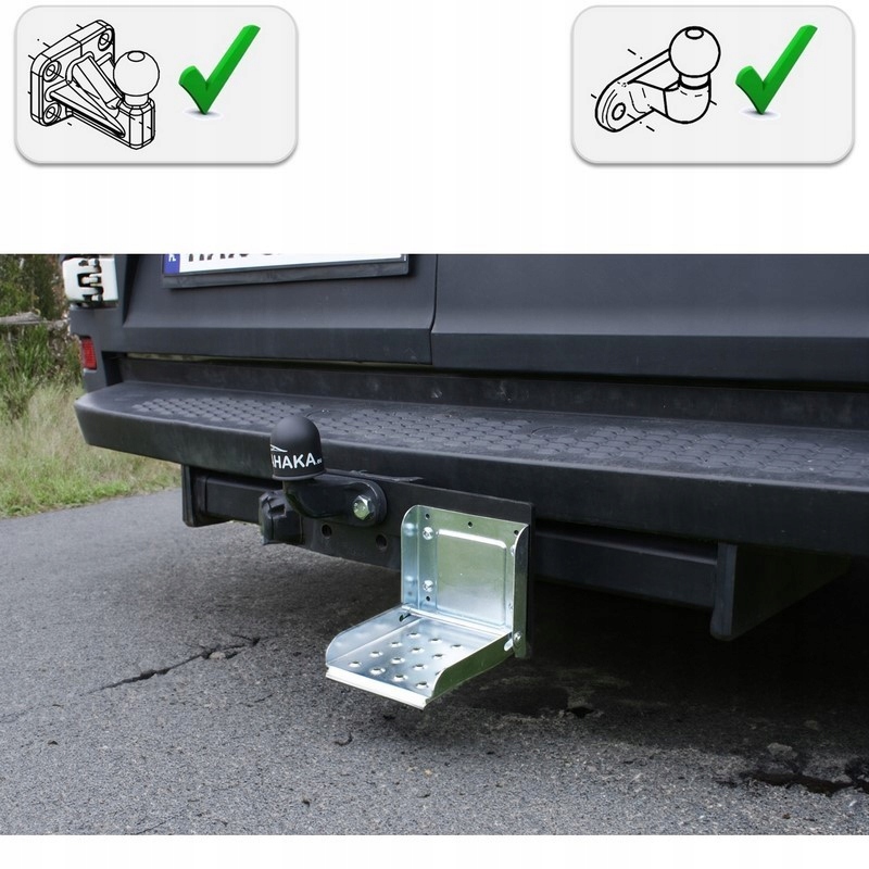 Эта ступенька универсальна и спроектирована таким образом, что ее можно устанавливать как на левой, так и на правой стороне шара фаркопа. Благодаря этому даже требовательный потребитель сможет насладиться комфортом использования дополнительной ступеньки.