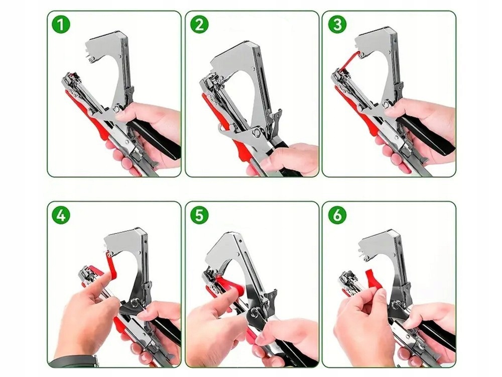 Наш степлерпрост в использовании даже начинающим садоводам. Просто загрузите ленту и скобы, поместите их в нужное место на установке и нажмите на спусковой крючок – быстро и легко.