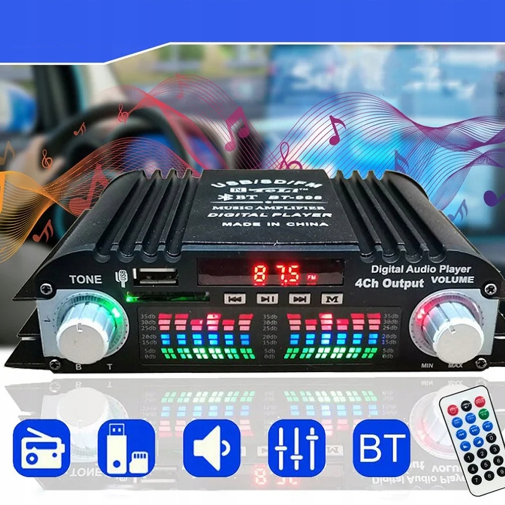 - ⭐ ⭐ ⭐ ⭐ ⭐ ⭐ Bluetooth 4-канальный 4-канальный-это универсальное аудиоустройство, которое предоставляет много способов воспроизведения вашей любимой музыки. Urządzenie ma cztery kanały zapewniające mocny dźwięk i można je podączyć do wielu głośników, aby uzyskać w pełni immersyjne wrażenia dźwiękowe. Technologię Bluetooth, Która umożliwia bezprzewodowe przesyłanie muzyki Z Telefonu, Tabletu Lub Innego urządzenia obsługującego technologię bluetooth. Кроме того, вы можете поместить SD -карту в усилитель и воспроизводить музыку, сохраненную на карте.