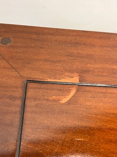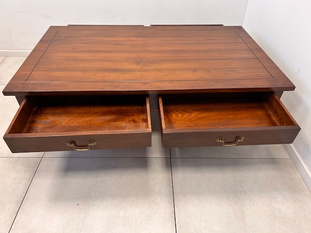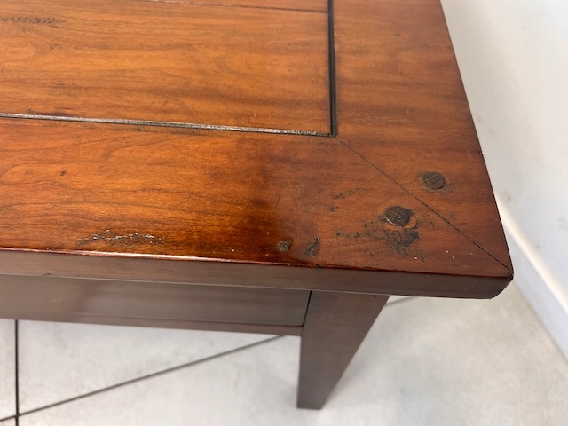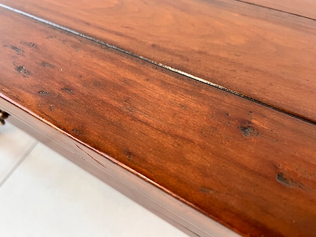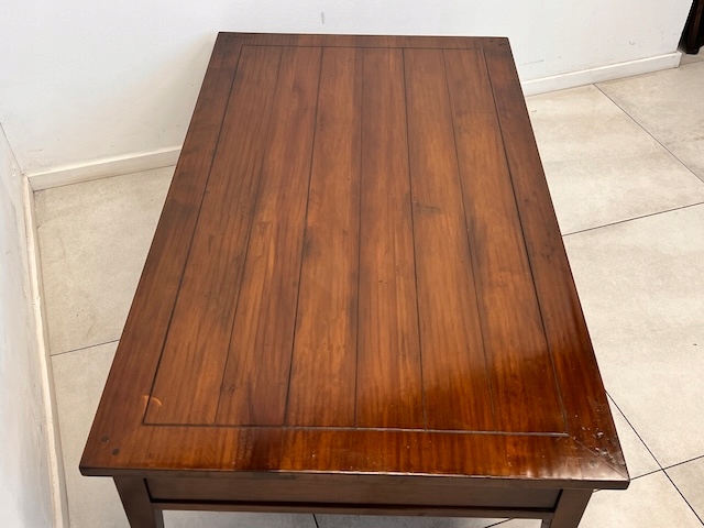 Стильная скамейка из твердой древесины. Очень хорошая простая форма. С обеих сторон есть два ящика. Верх приклеен с несколькими досками. Благодаря этому это не будет искажено и не высохнет. Есть следы использования, небольшие функции и ссадины. Вокруг середины длинная царапина. Столетняя столешница нарезана. Это не совершенно гладко. Быть под пальцами, ощущаются деревянные борозды. Есть также разные несовершенство дерева, которые должны намеренно добавить свой возраст. Готов вставить.