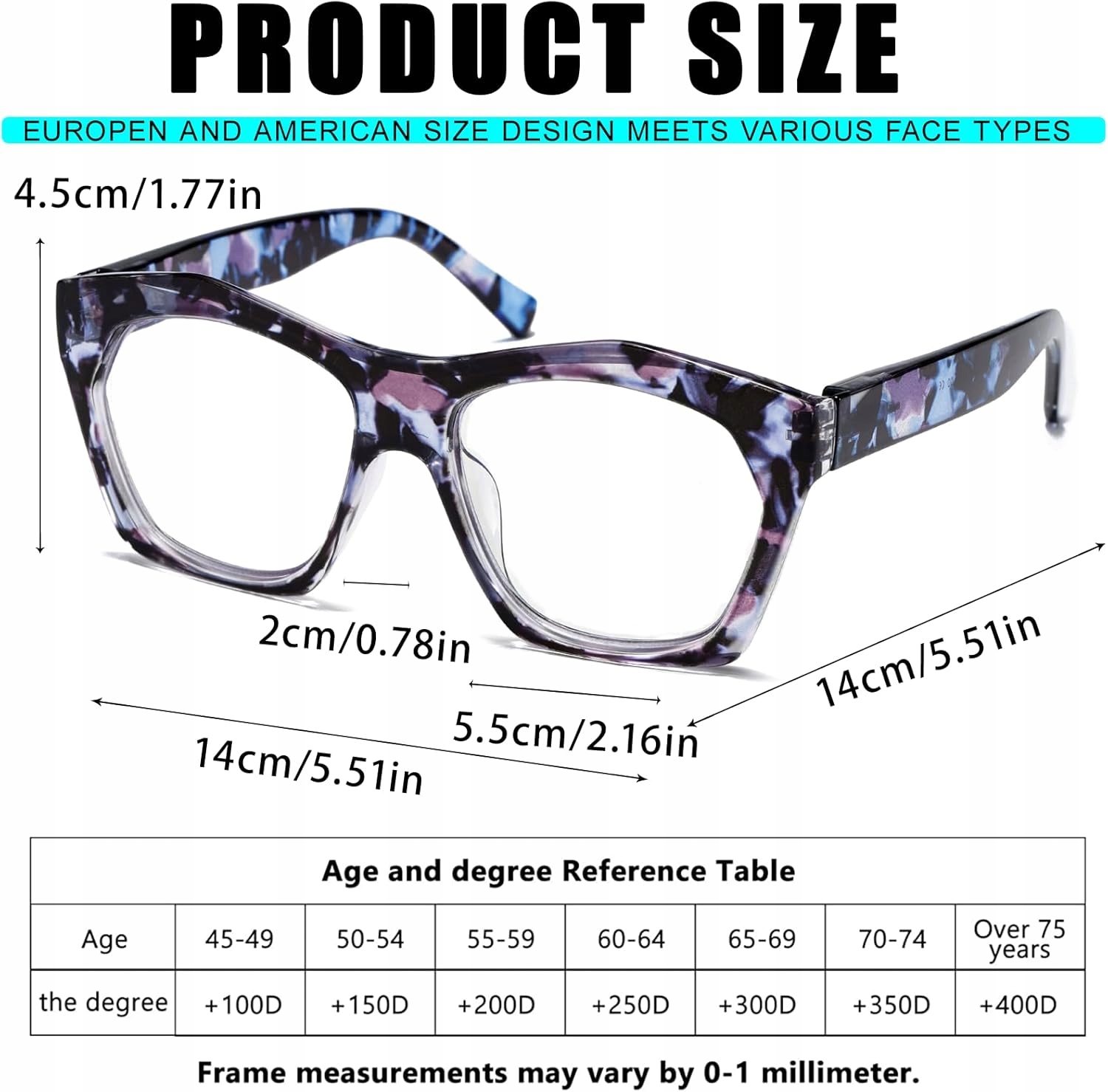 【Универсальные 3 части】: наши большие очки для чтения доступны в разных цветах, благодаря тому, что они соответствуют различным формам лица и возможностям. Каждый пакет имеет 3 пары очков, так что вы можете насладиться свежим видом и легко адаптироваться к различным ситуациям. Используйте одну пару дома, а другая на работе, наслаждаясь стилем и функциональностью, куда бы вы ни пошли.