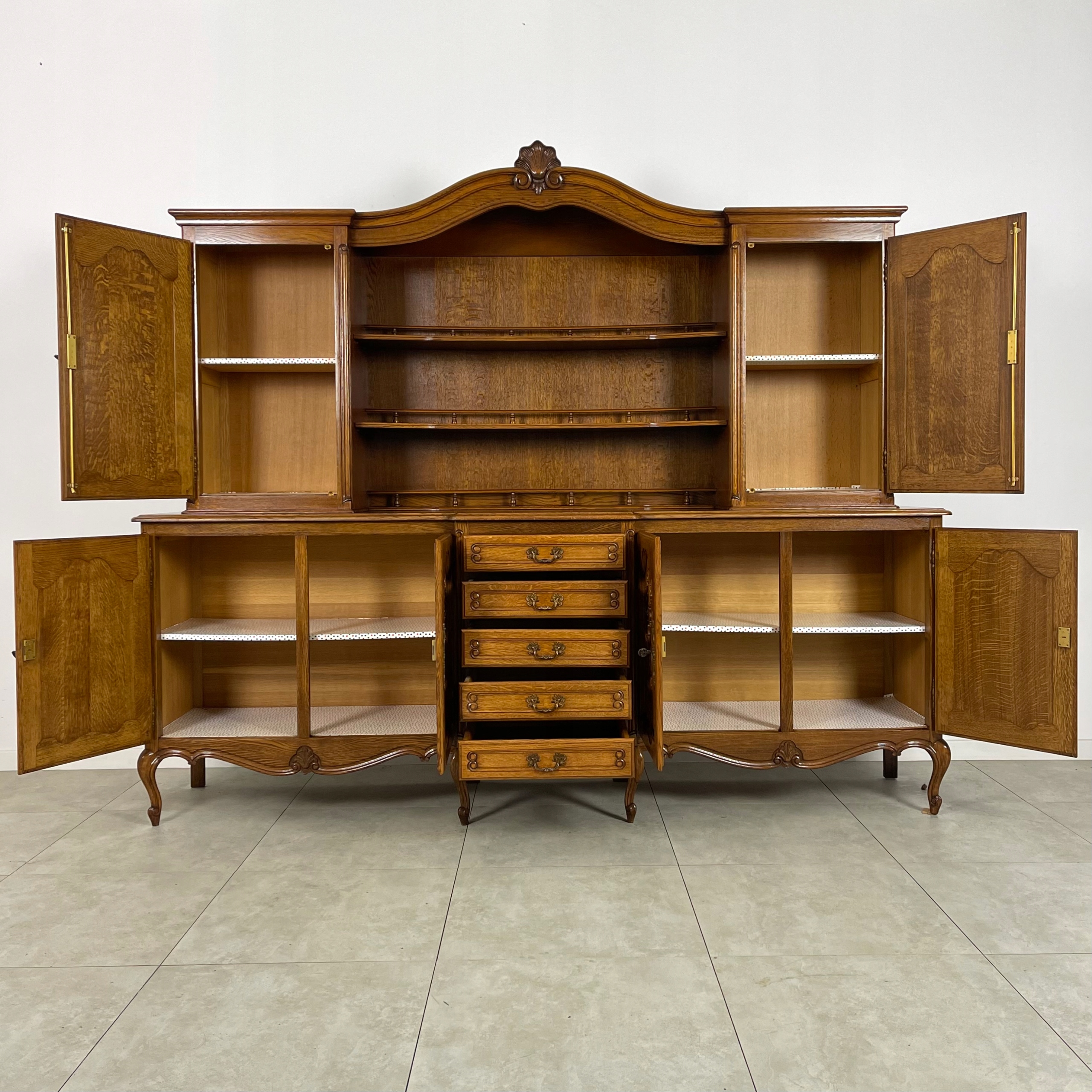 Все изделие богато украшено резьбой и латунной фурнитурой. Стоит на согнутых ножках Людвика.