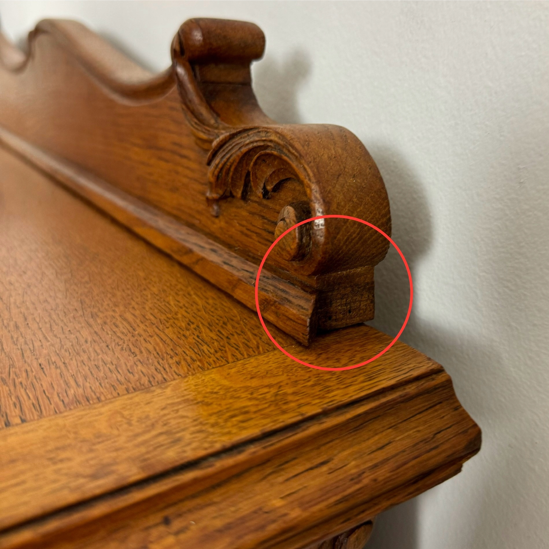 Предмет мебели украшен резьбой и латунной фурнитурой, что придает ему исключительный элегантный и изысканный вид.