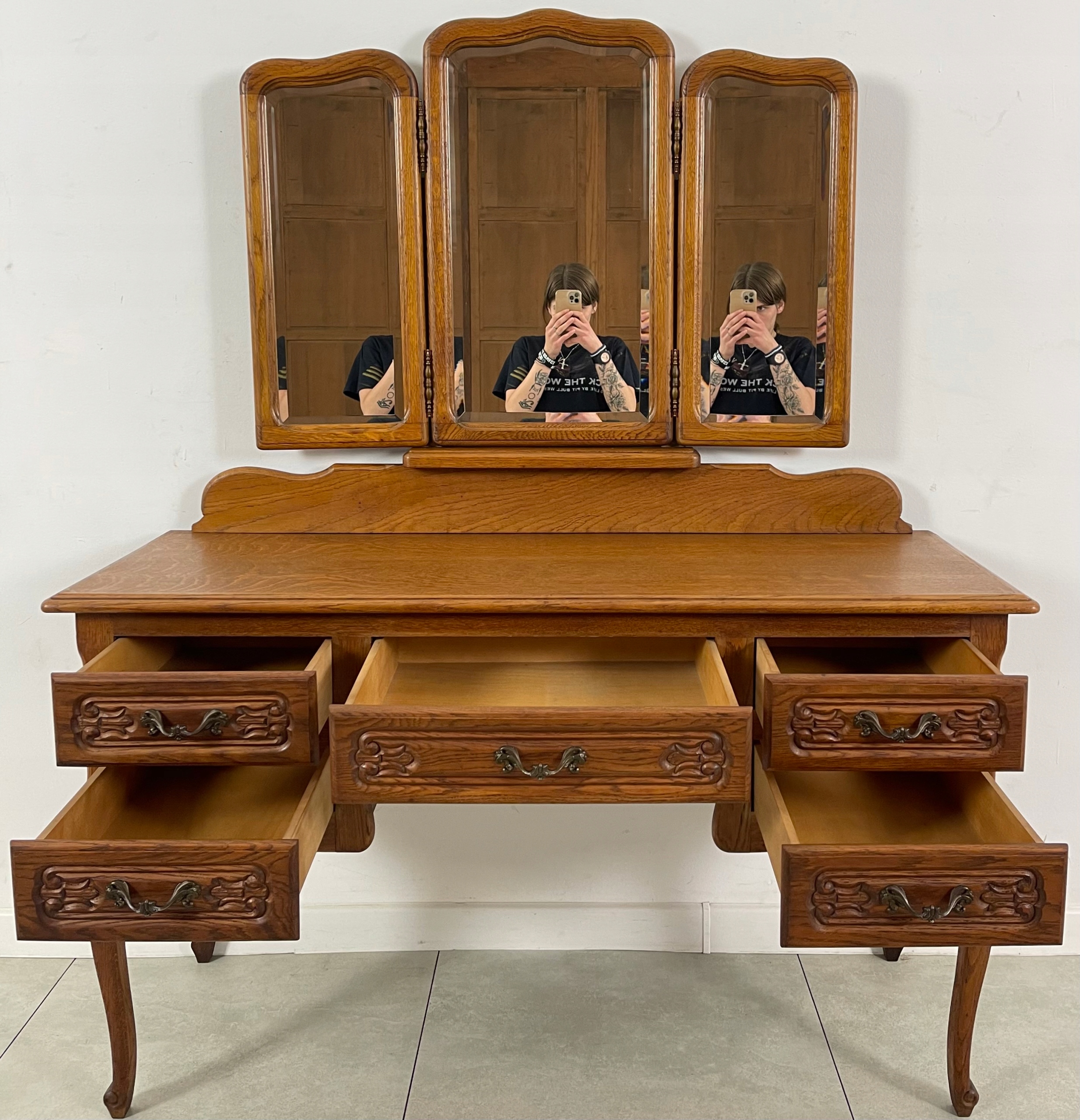 СТИЛЬНИЙ ДУБОВИЙ ТУАМЕТНИЙ СТОЛИК LUDWIK З ПОТРІЙНИМ ДЗЕРКАЛОМ LUDWIK FRANCE 1034