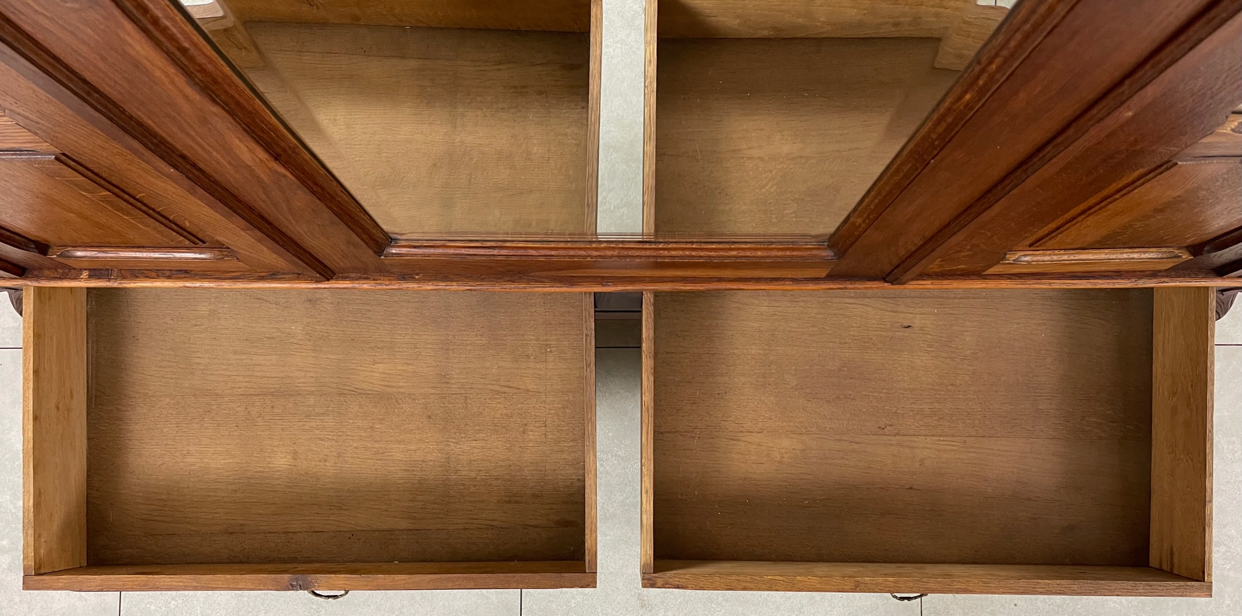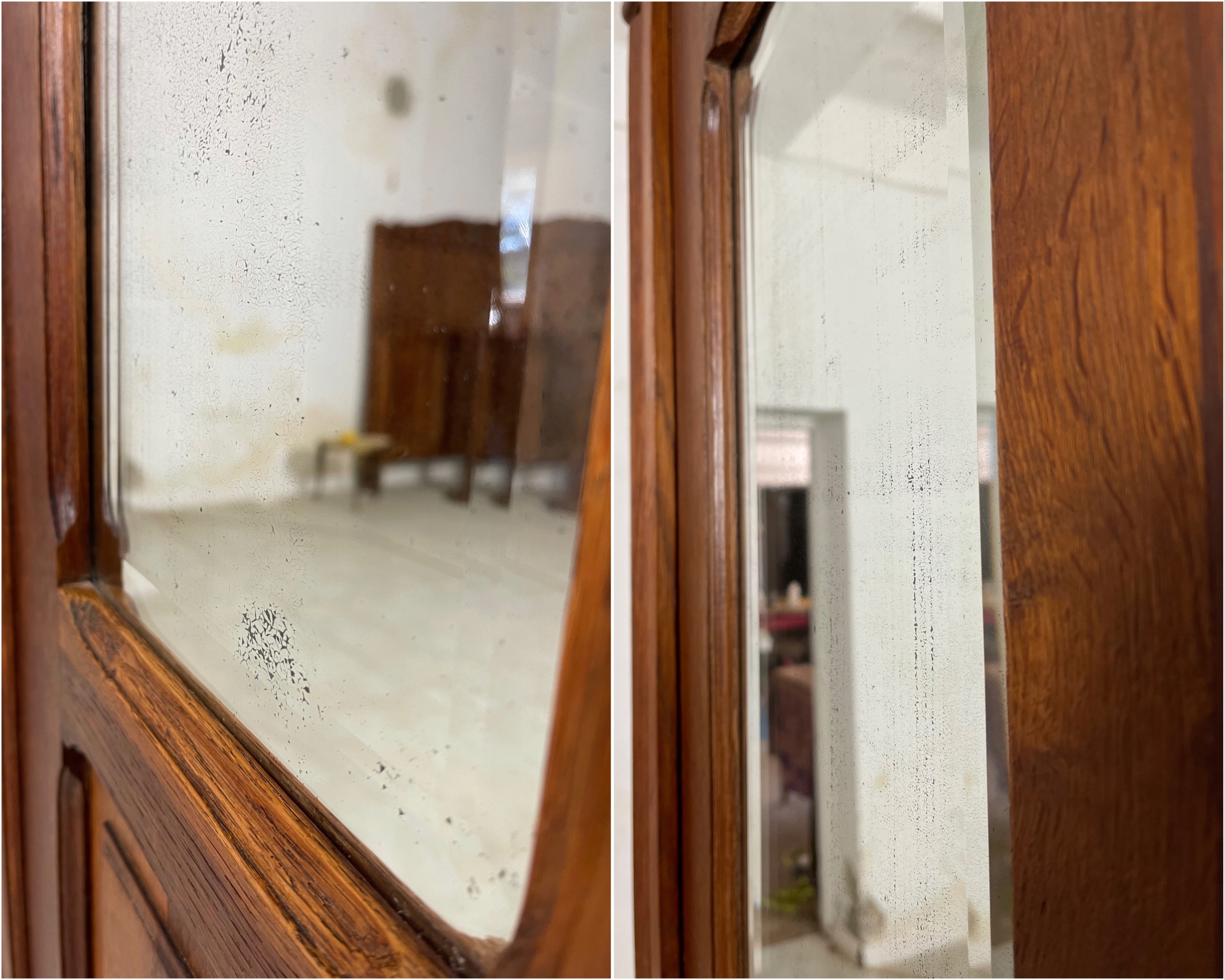 Мебель имеет оригинальные кристаллические зеркала. Зеркала скандированы и поступают из эпохи. Зеркальный панель в очень хорошем состоянии, хотя вблизи, мы можем заметить следы, которые оставило время прохождения (см. Последнее прикрепленное фото).