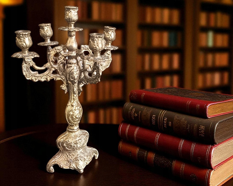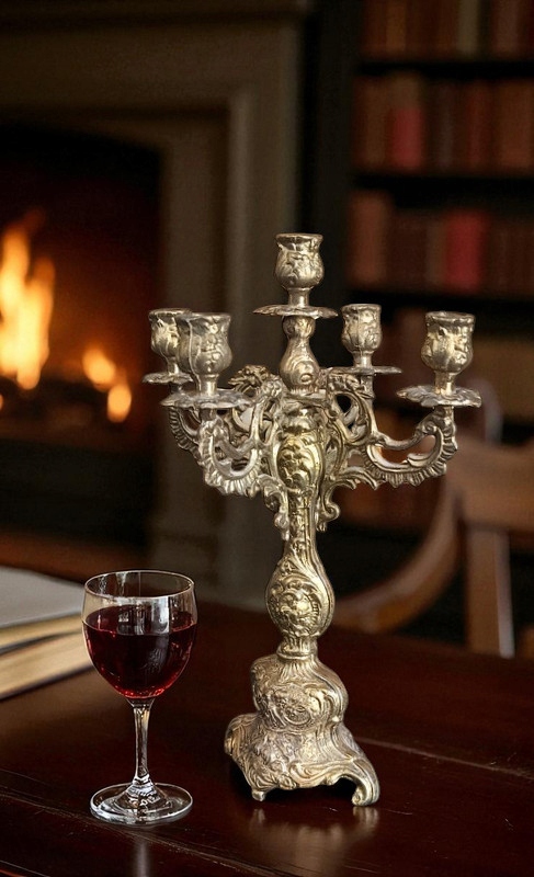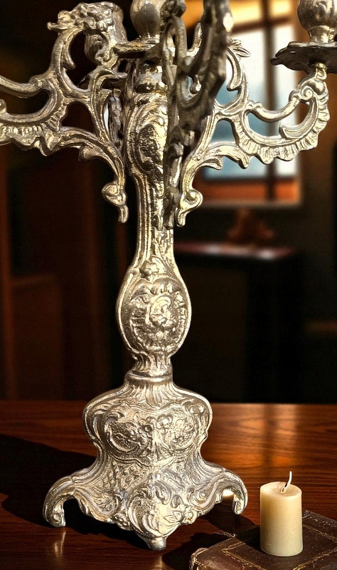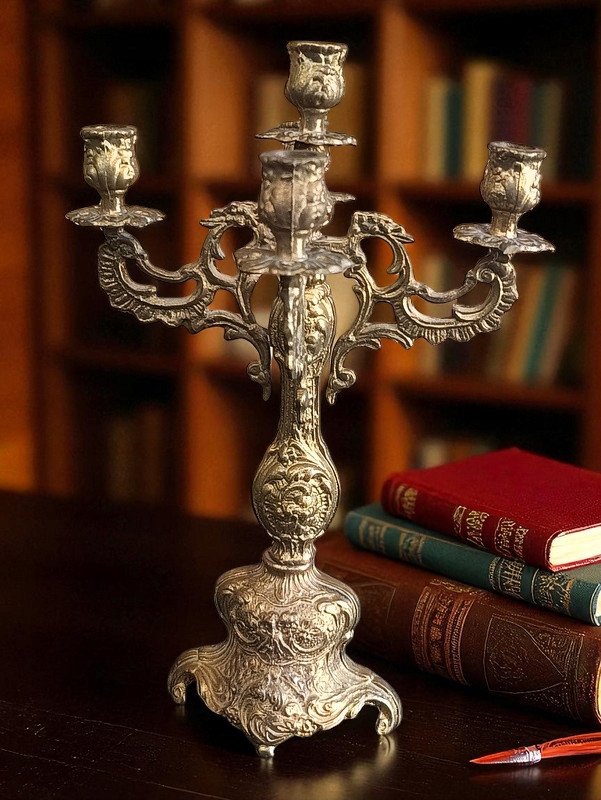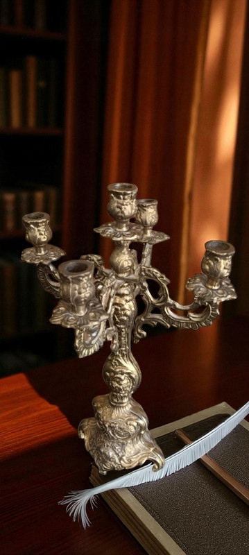 медный подсвечник, очень точно сделанный с вниманием к наименьшим деталям. Привезено из Франции; Около 50 лет. Используется в идеальном состоянии. Плечи для пяти свечей. Вал очень массивный и эффективный. Это выглядит очень изысканно - вот почему я призываю вас купить !!! h1>